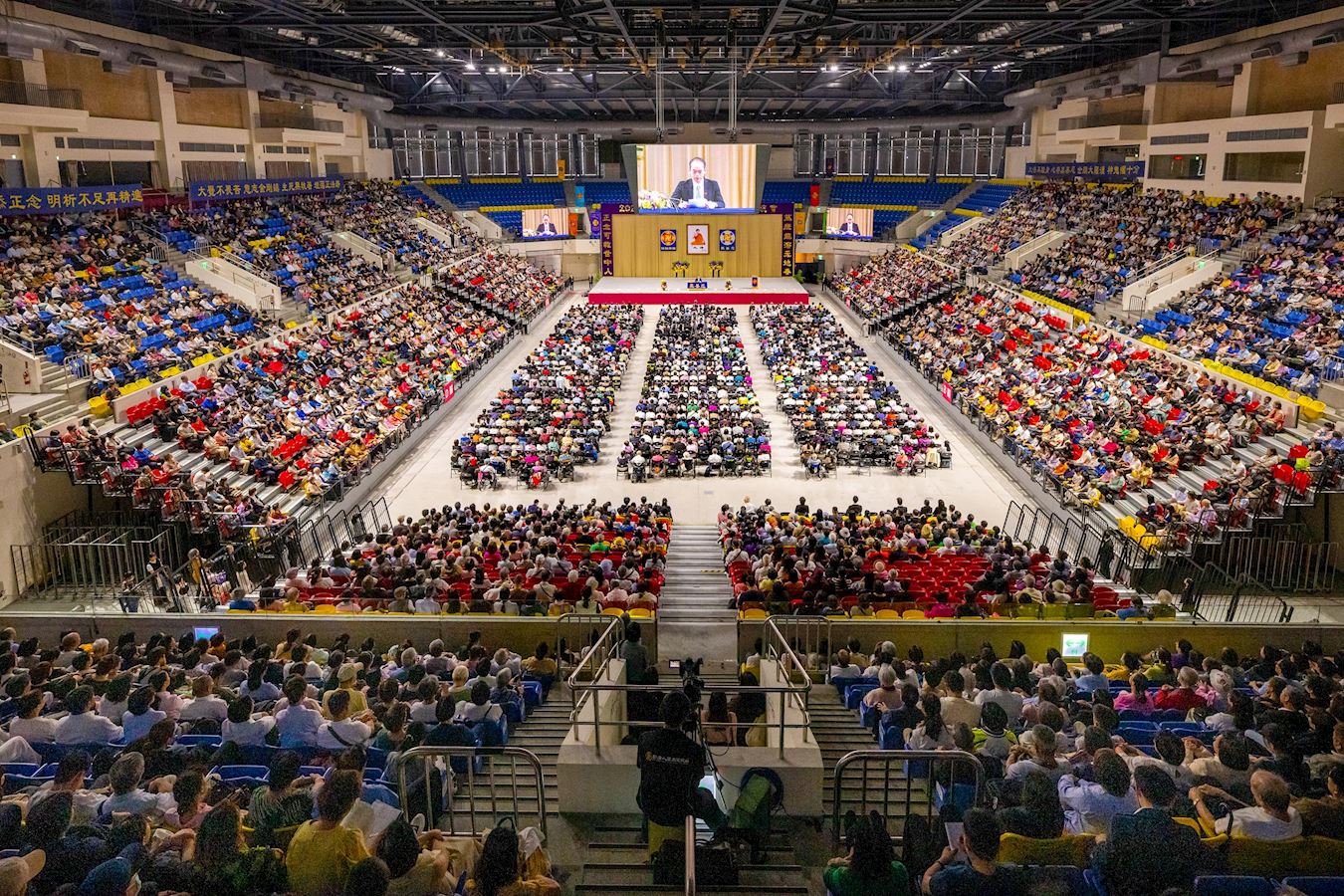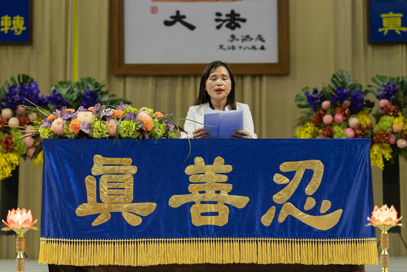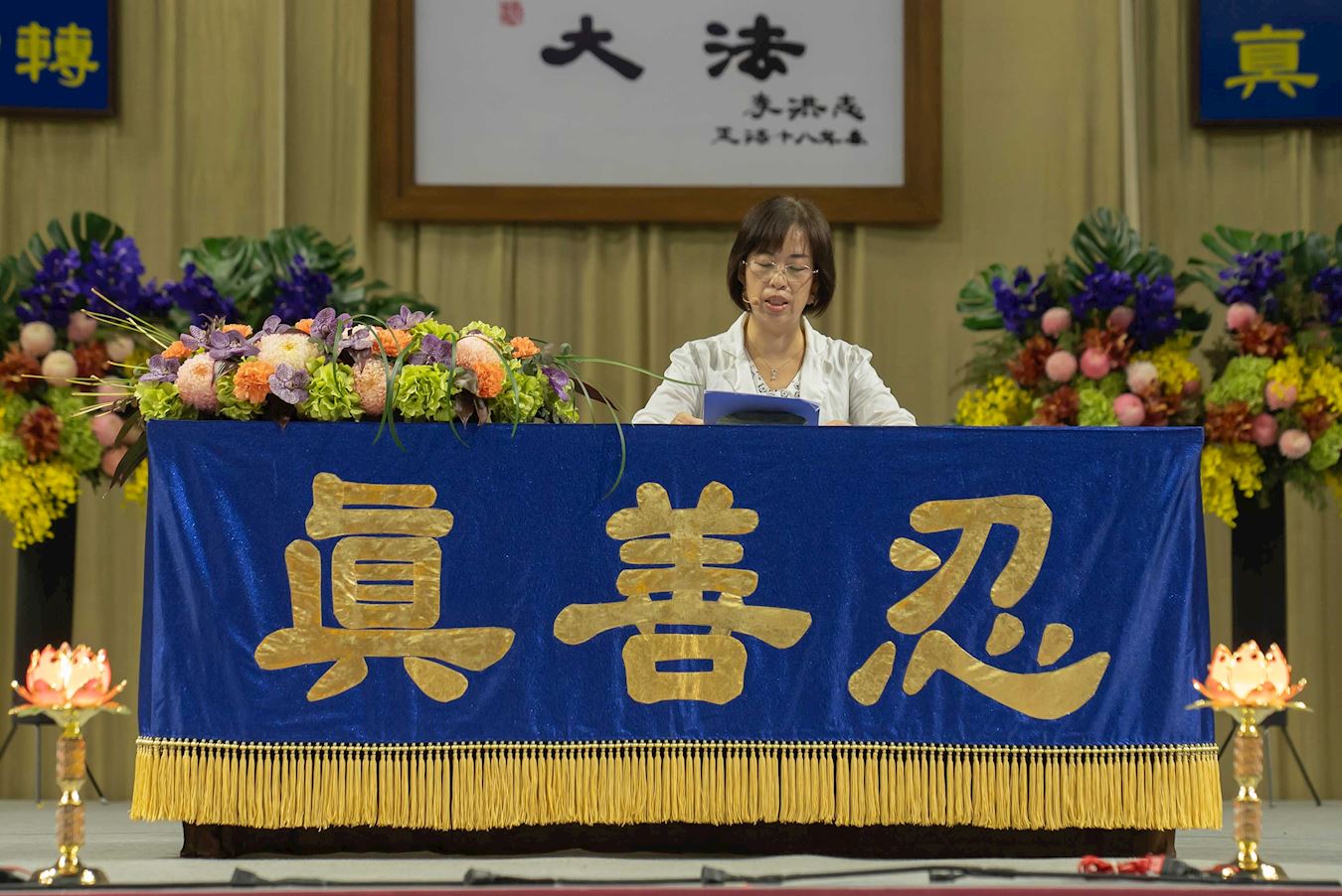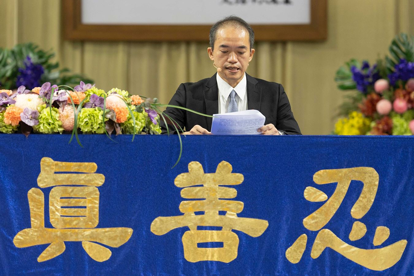 法会现场庄严祥和,十九位来自社会各行各业、不同年龄时代的法轮功学员,分享他们面对人生难关与考验时,如何坚持学法,用法中升起的正念归正自己、知难而上,并在各自环境中,守住善念、救度众生的心路历程。