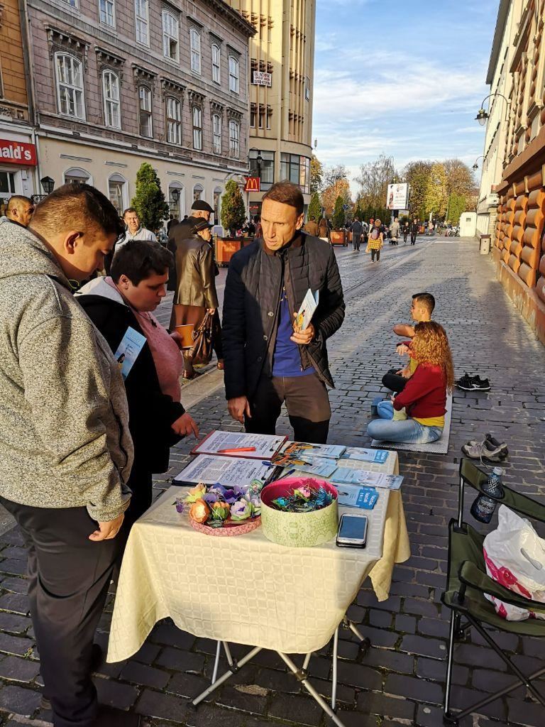 对于罗马尼亚的法轮功学员来说,共和街也是讲真相的好地方。他们发传单,与民众交谈,介绍什么是法轮功,以及法轮功学员被中共迫害的事实真相。自二零一九年以来,学员们每周六都会在这里举办信息日活动,即使在疫情期间也从未间断过一次。