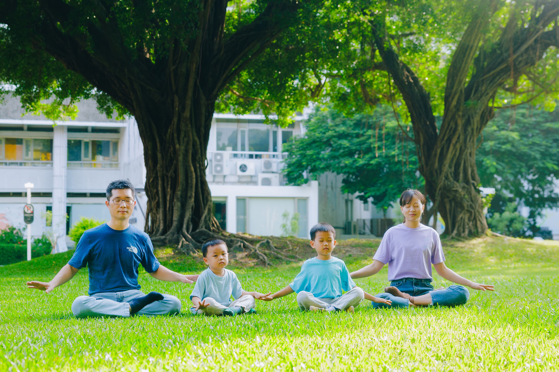 ![]() 图2:士哲、翊绫夫妇和两个孩子一同炼功,沐浴在大法中修炼,小家庭和睦幸福。 |