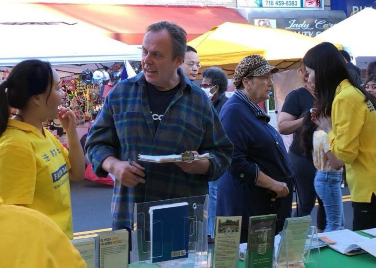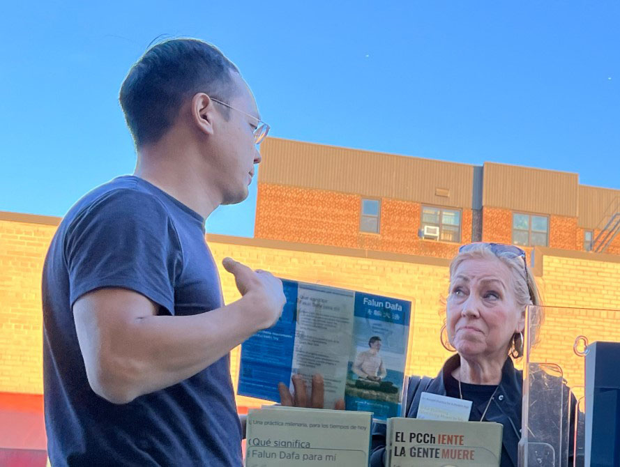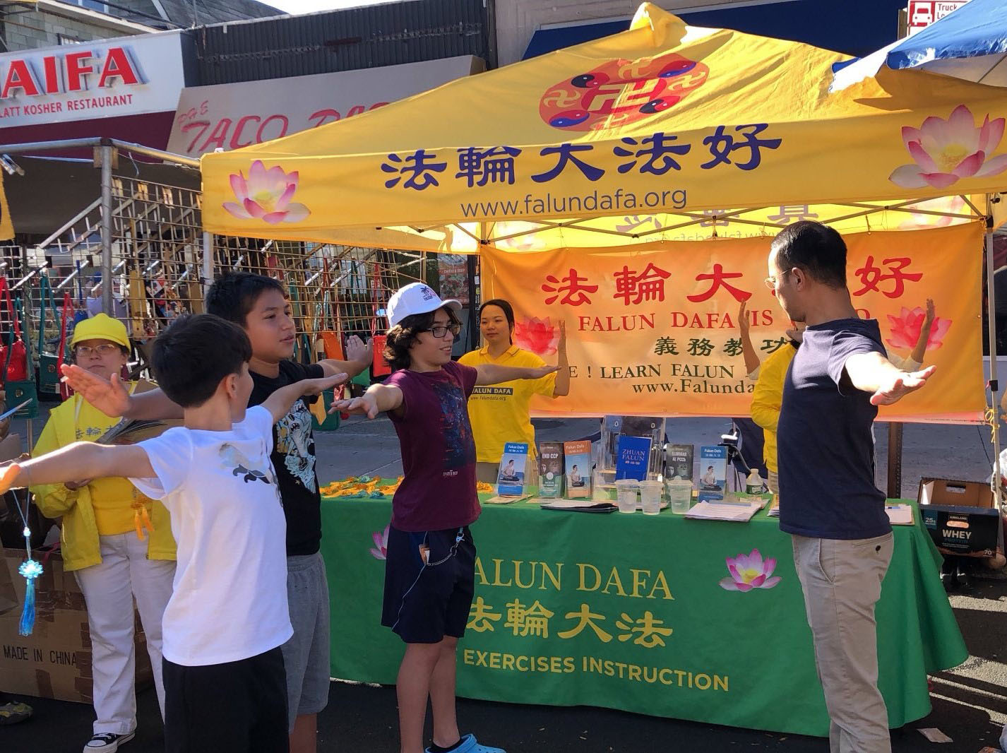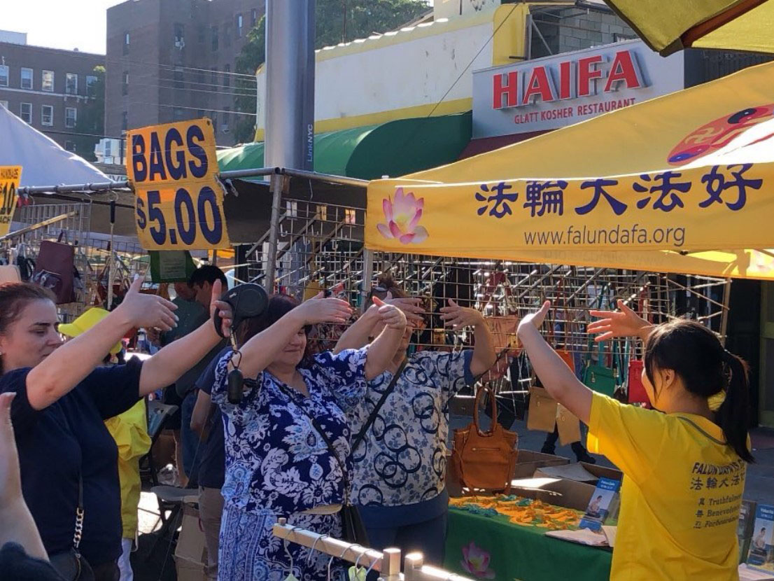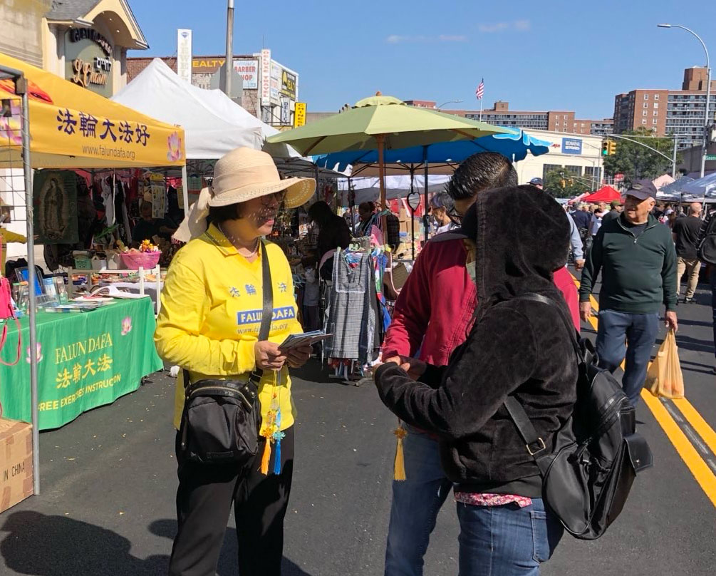 法轮功学员在纽约街市弘法 受到社区民众喜爱