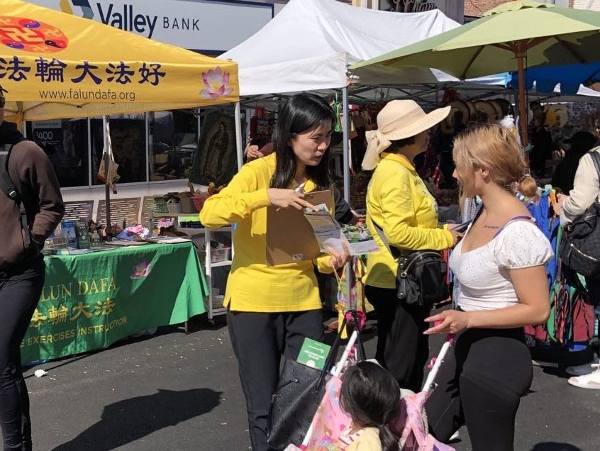 从小就来到美国的苏珊(Susan Xu)女士,她静静地在展位前思考并观察着学员,这时法轮功学员面带微笑,真诚友好地上前与她交流。她问:“在中国是不是真的有监狱、洗脑班、劳教营关押着法轮功修炼者?他们是不是真的遭受了那么多的迫害?”学员说:“我就是曾经在中国被非法关押了几次,流离失所,最后辗转来到美国才拥有了自由的修炼环境。”