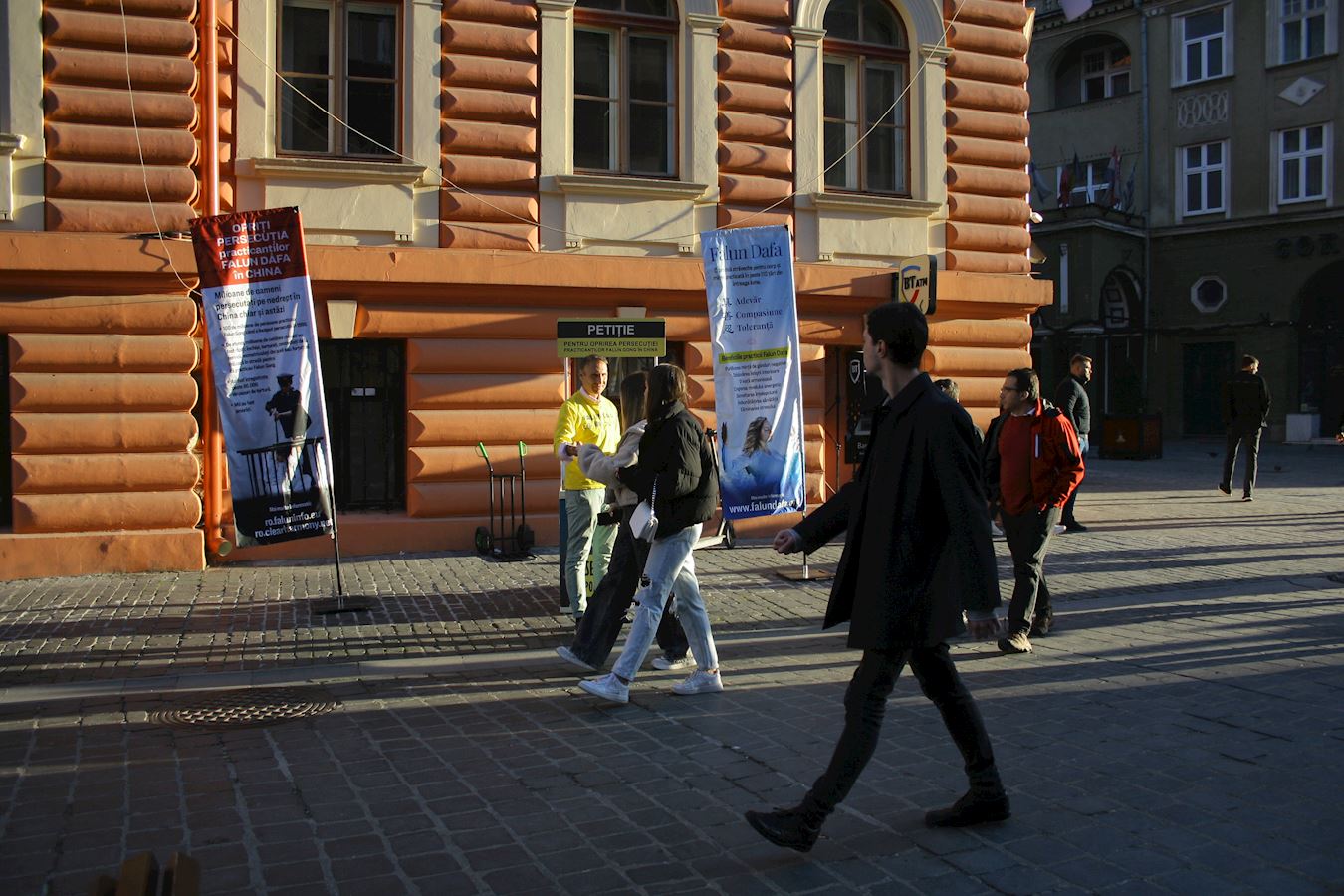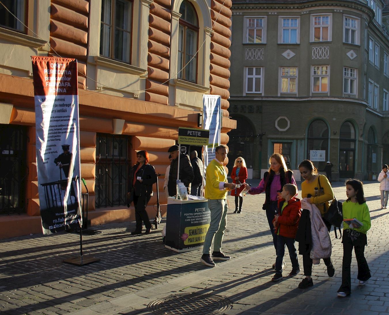 ![]() 图1:二零二四年十月十九日,法轮功学员在布拉索夫的法轮功展位。 |
