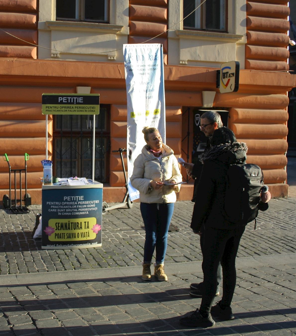 还有一位来自多伦多的男士,他是罗马尼亚人,已在加拿大生活了二十五年,他在布拉索夫观光时偶然路过共和街,法轮大法展位立即引起了他的注意。他表示曾经在多伦多听说过活摘器官的事情。这位男士主动在三份反迫害的请愿书上签名,并表示自己愿意提供人道帮助。
