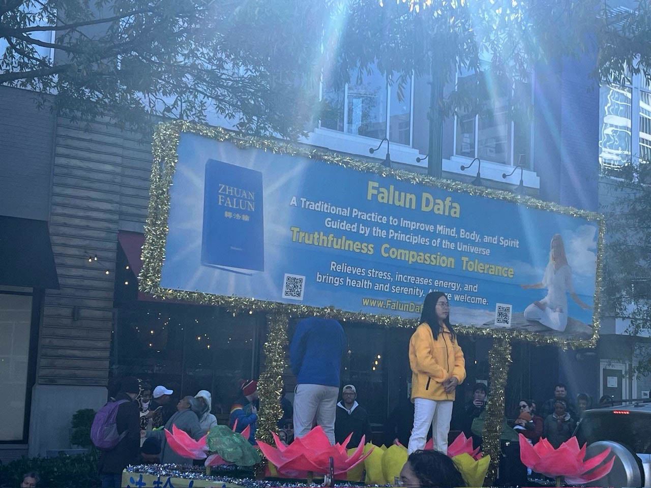 麦克(Michael)说:“法轮功的游行队伍中有一个大花车,非常平和,非常美好。他们把真、善、忍带到社区,这很好。”