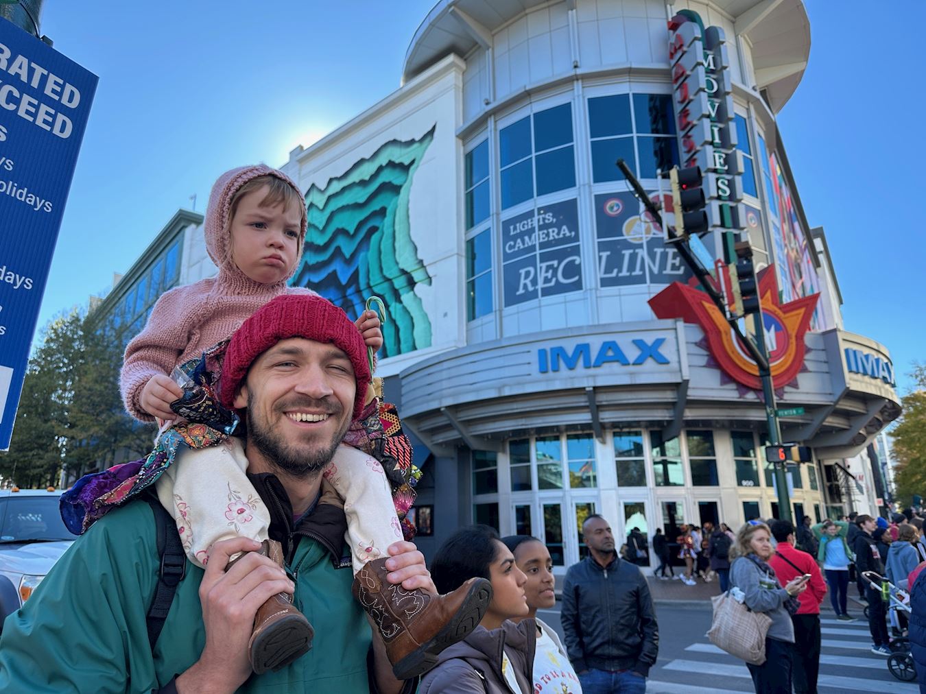![]() 图10:麦克(Michael)带着女儿在路边观看游行。 |