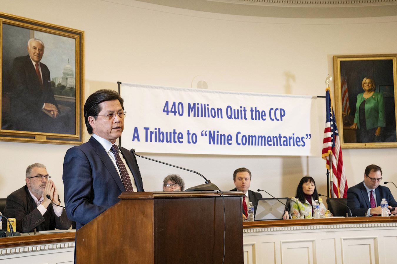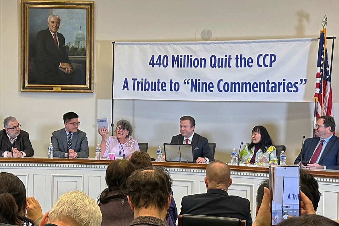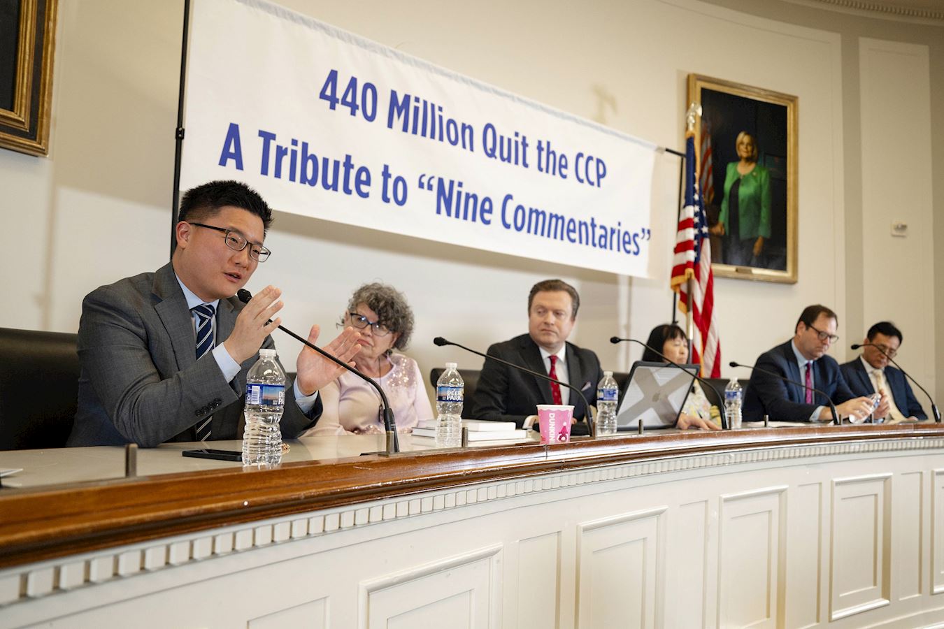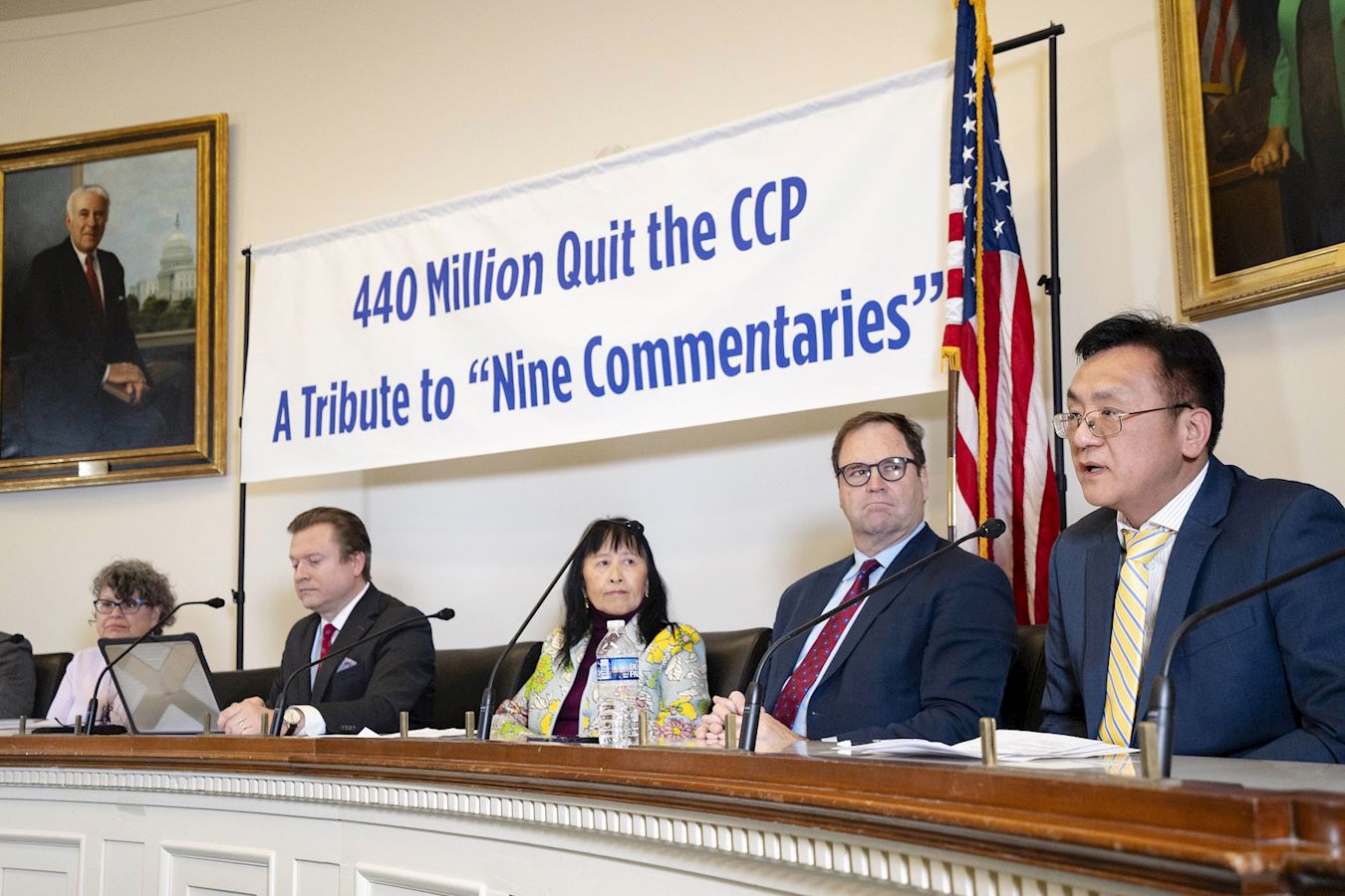 ![]() 图9:二零二四年十一月二十二日,法轮大法信息中心副主任刘宁平(Larry Liu) (右一)在美国国会众议院举行的《九评》二十周年研讨会上发言。 |