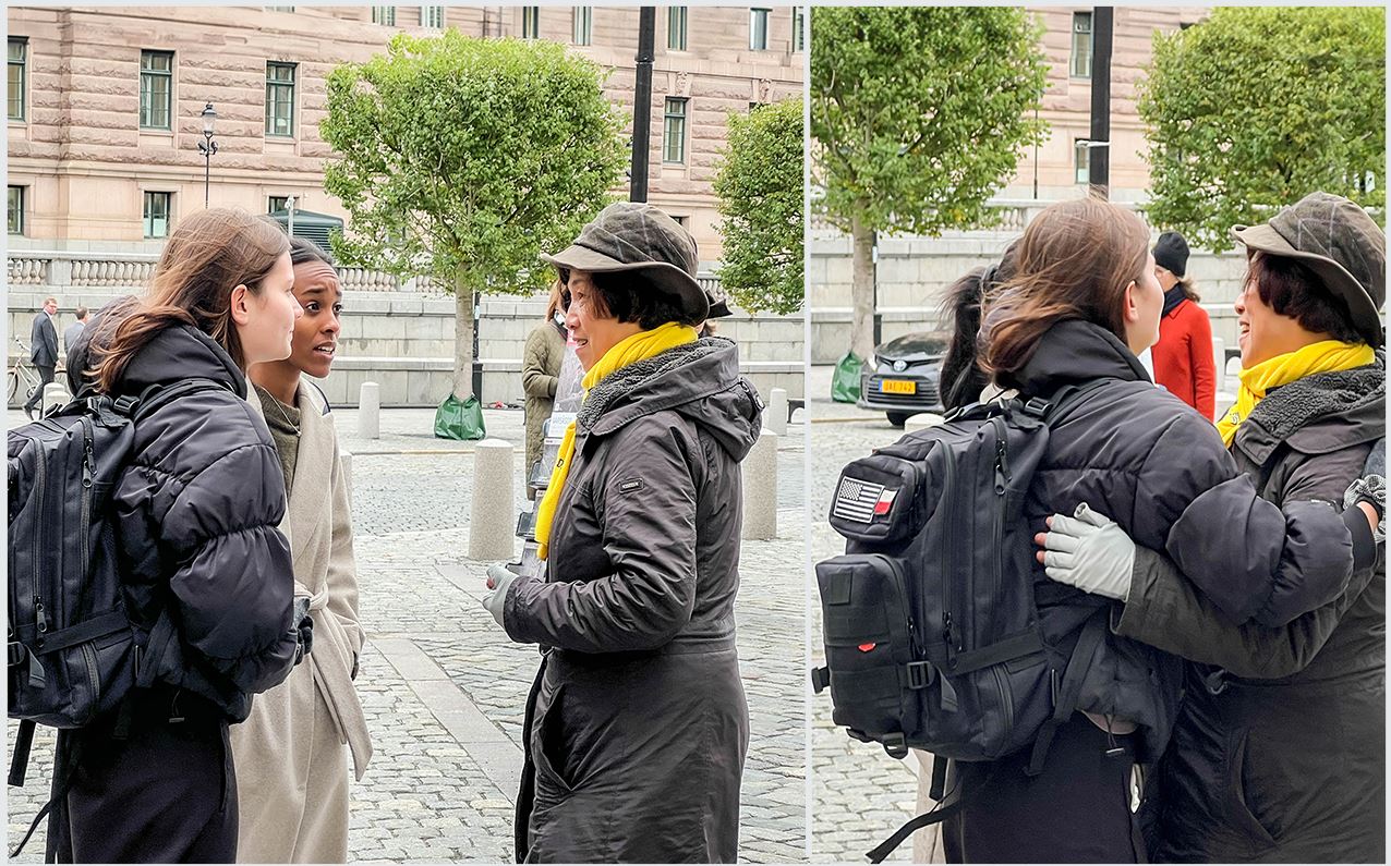 姐妹俩静静地站在那里,很专注地倾听法轮功学员讲真相。她们了解了在中国发生的中共对法轮功学员惨无人性的迫害、甚至活摘人体器官的真相,其中包括基督徒也是被中共迫害的宗教群体时,很是气愤。“我们的心都要碎了!这也太没人性了!”交谈中得知姐俩都是基督徒。