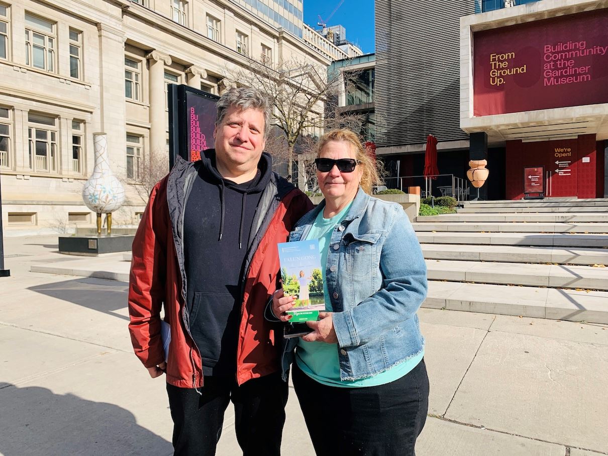 凯莉(Kelly)和丹(Dan)在参观完安省博物馆出门时,看到了纪念《九评共产党》发表二十周年的大游行,在了解到这场游行的宗旨后,他们说:“我们也决定加入其中,谴责共产主义恶行,以及反对中共迫害法轮功。”随后,他们欣然接受了学员送给他们的《九评》光碟,并表示回去后会去观看,还会去阅读相关书籍。