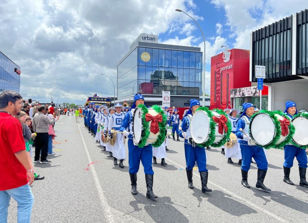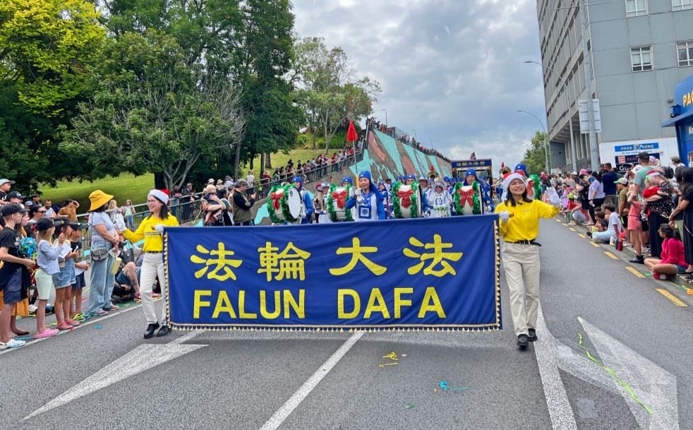 ![]() 图13~14:二零二四年十二月五日和八日,由新西兰法轮功学员组成的腰鼓队分别参加了奥克兰的Mangere Bridge区、Howick区的圣诞游行。 |