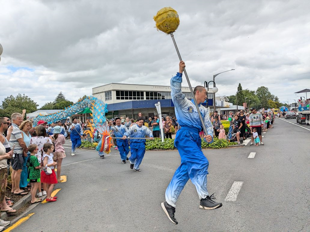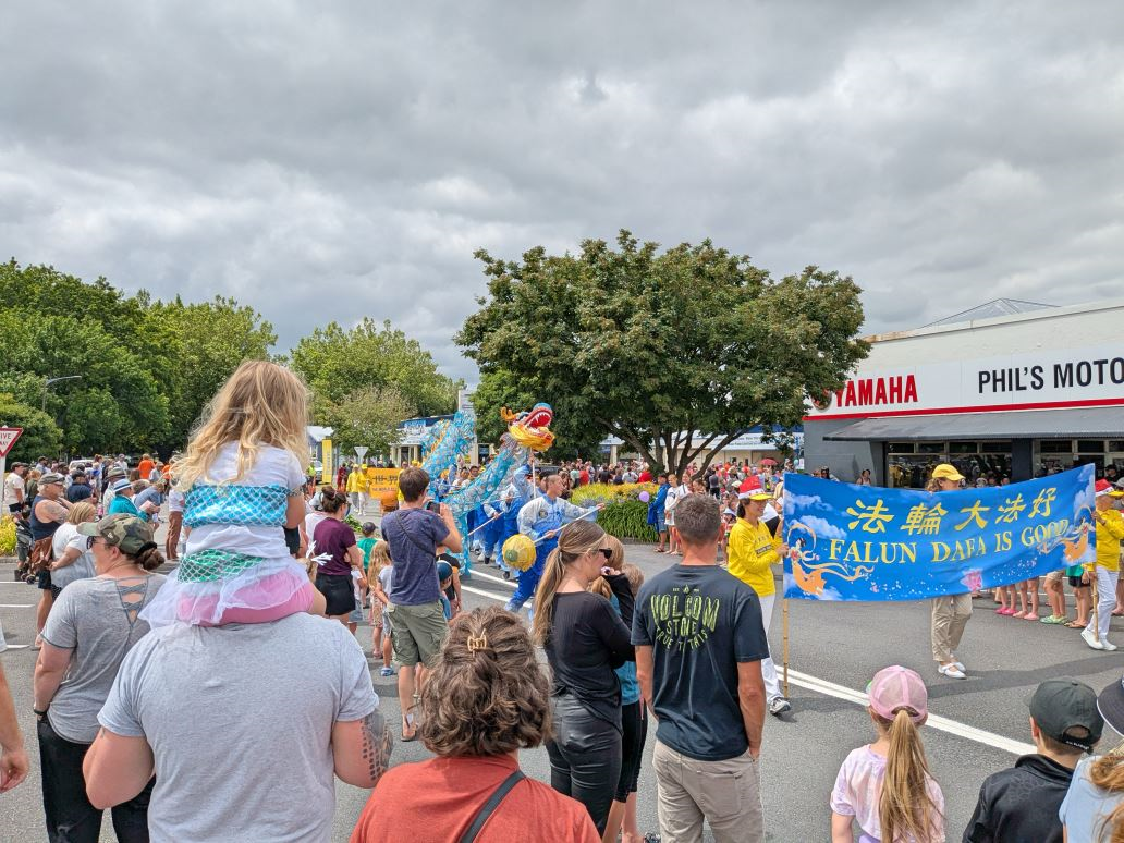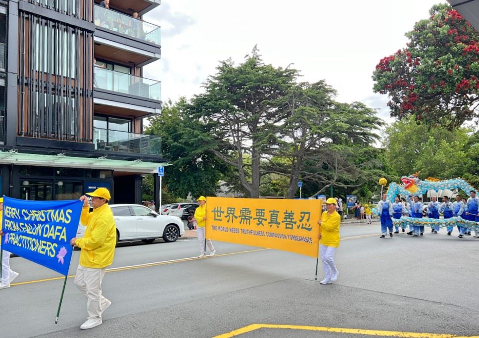 ![]() 图11~12:二零二四年十二月七日,由新西兰法轮功学员组成的舞龙队参加了Matamata小镇的圣诞游行。 |