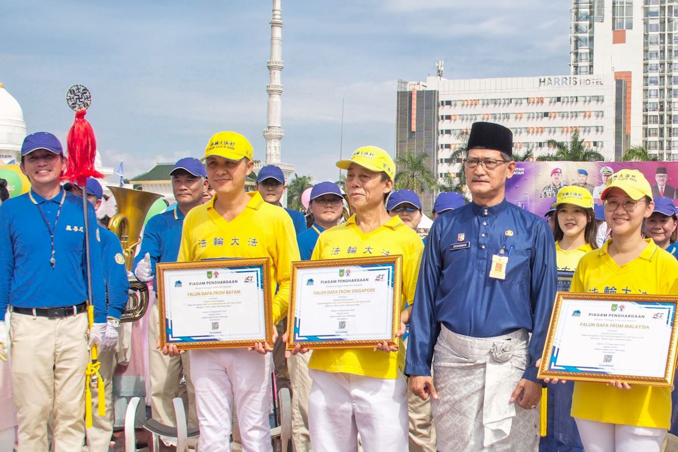 巴淡市青年体育部部长祖尔卡奈因(Zulkarnain)对学员的热情参与和出色表现感到非常高兴,结束后他亲自向法轮功学员代表颁发了获奖证书。