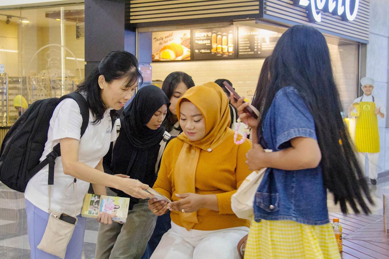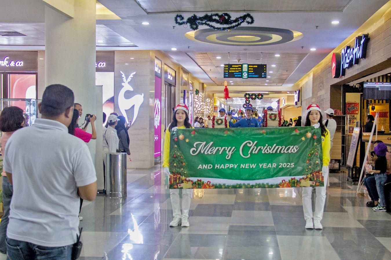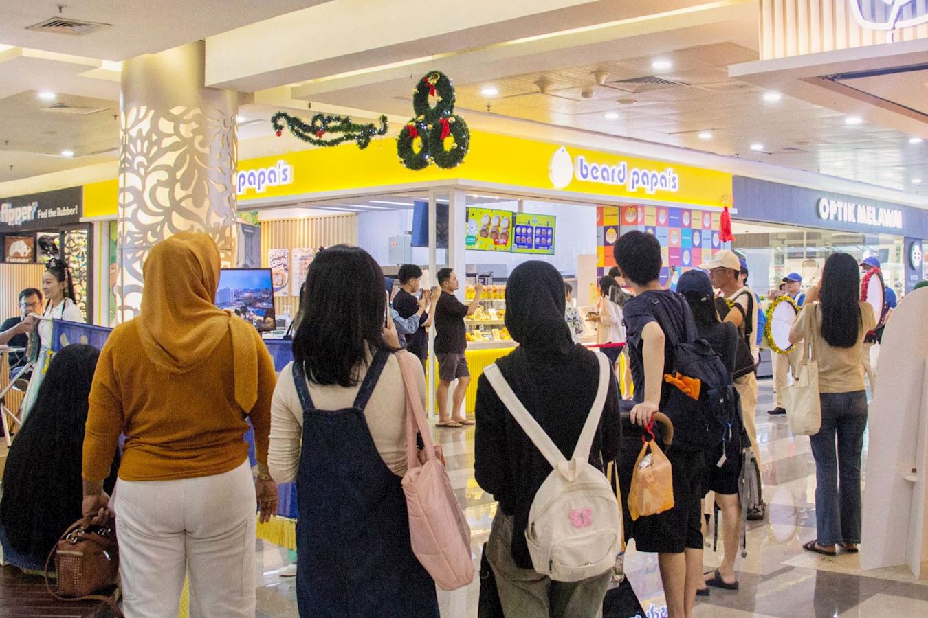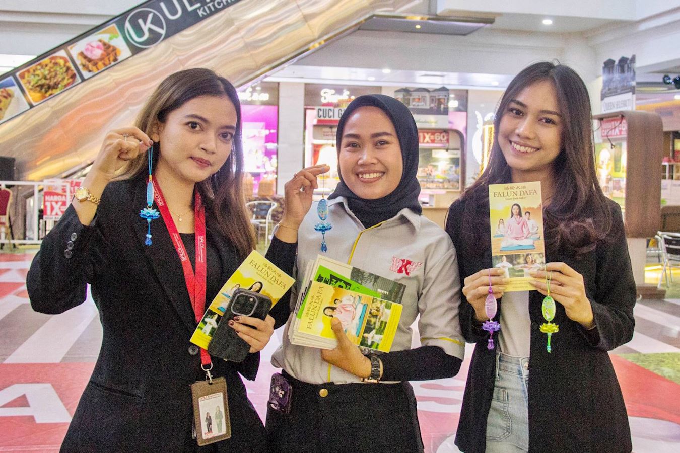 十二月十四日,即游行的前一天,法轮功学员还受邀参加了在巴淡岛最大的购物中心之一的超级购物中心(Mega Mall)举办的圣诞节和新年庆祝活动,天国乐团和腰鼓队穿过商场的三个楼层,吸引了许多游客驻足观看。学员向民众发放法轮大法真相资料。