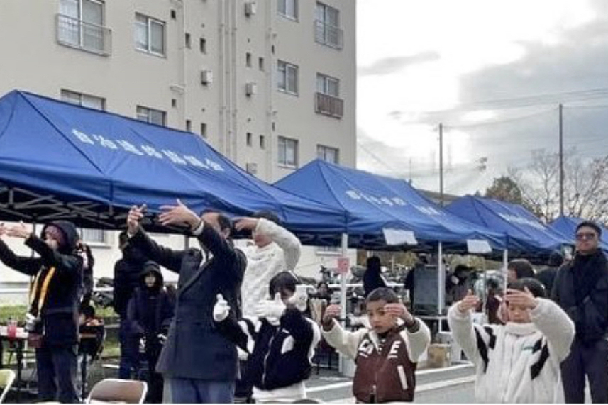 图8:茨木市郡山地区联谊活动上跟着学炼的学员和民众。