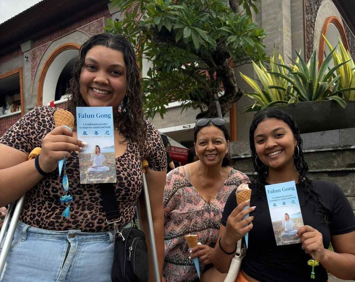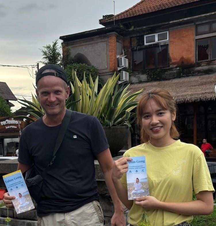 一位来自荷兰的游客在接到资料后表示,他对这一修炼方法很感兴趣。他说,在巴厘岛的三天行程中,他计划前往炼功点,并阅读《转法轮》。他说,他感受到真、善、忍的原理在自己内心深处,并希望进一步了解《转法轮》。