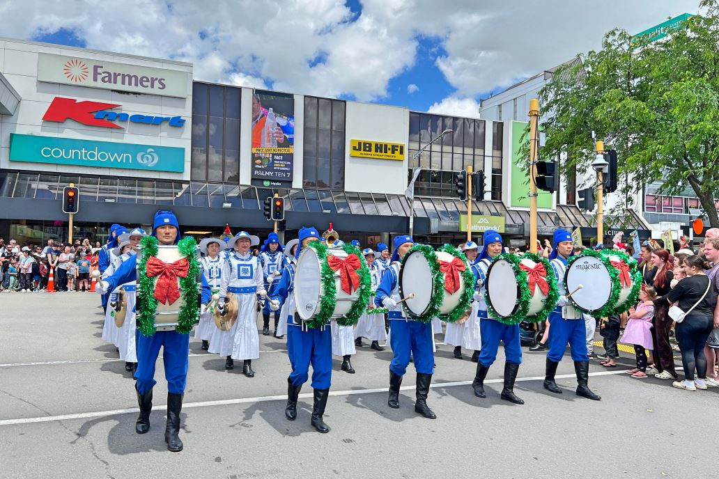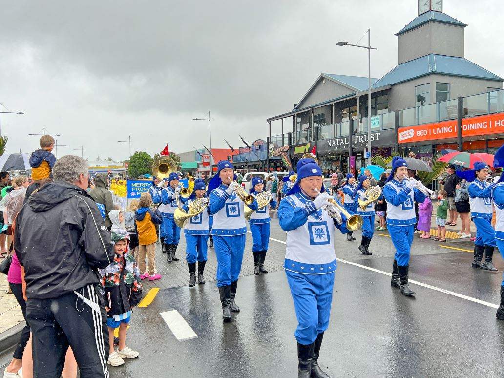 ![]() 图7:二零二四年十一月三十日,由新西兰法轮功学员组成的天国乐团参加了菲蒂昂格(Whitianga)圣诞游行。 |