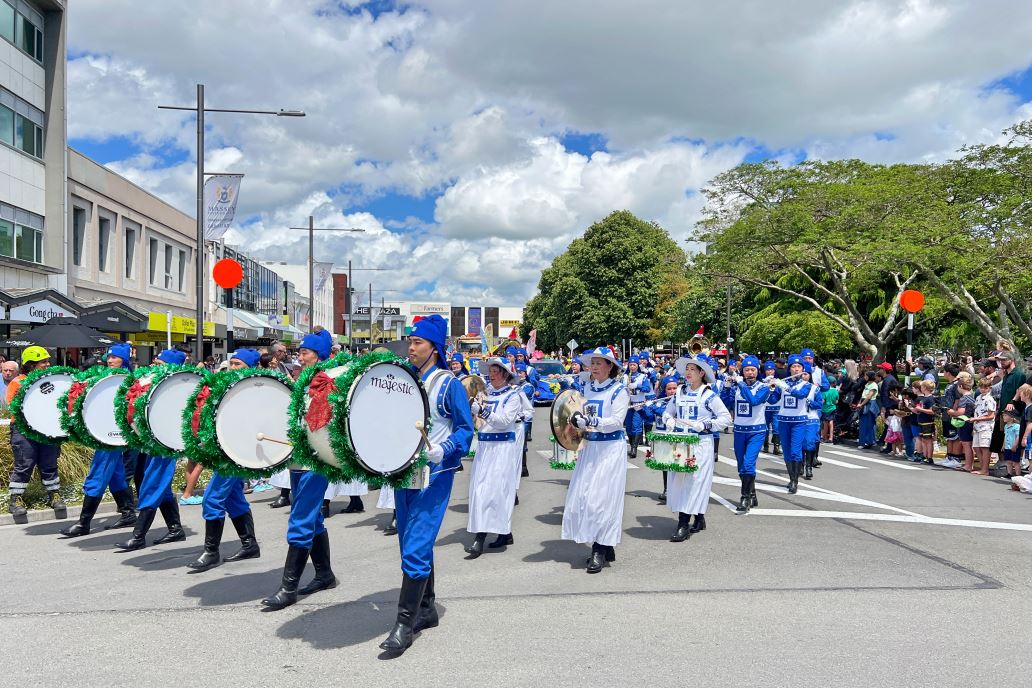 六场圣诞游行分别在北帕默斯顿(Palmerston North)、菲蒂昂格(Whitianga)、罗托鲁瓦(Rotorua)、剑桥镇(Cambridge)以及奥克兰Manurewa区、Devonport区举行。其中北帕默斯顿是新西兰的第六大城市;菲蒂昂格是水上运动者热爱的滨海小镇;罗托鲁瓦以美丽的湖泊、森林和地热奇观闻名,在那里,法轮功团体荣获“最多姿多彩(Most Colourful)”奖。
