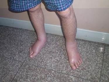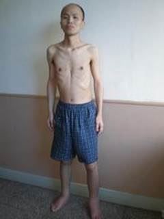乐声着2009年从闽西监狱出狱后的照片。从照片可以看出,乐声着受迫害之严重,体形极度消瘦。腰部有很大肿块,下肢水肿严重,2009年初狱中 就查出有严重疾病,还一直迫害到7月23日才通知家属接出。