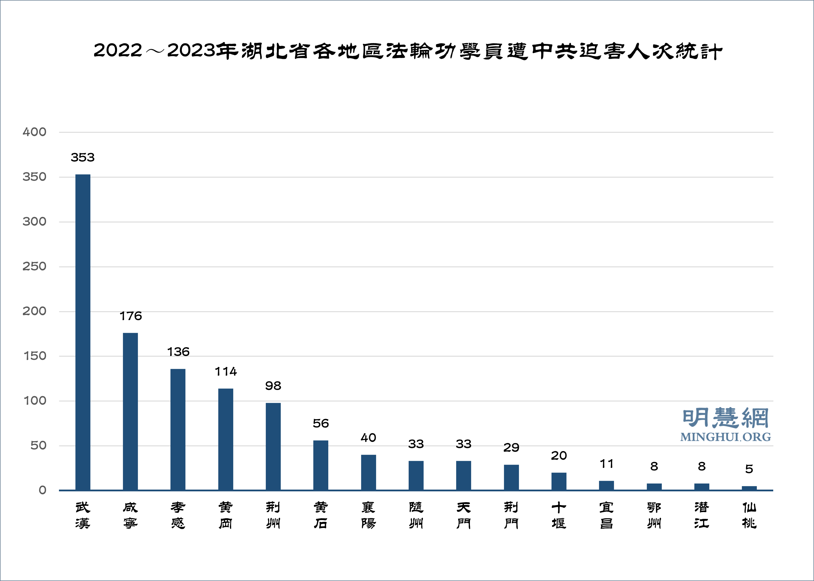图1:2022~2023年湖北省法轮功学员遭中共迫害人次统计