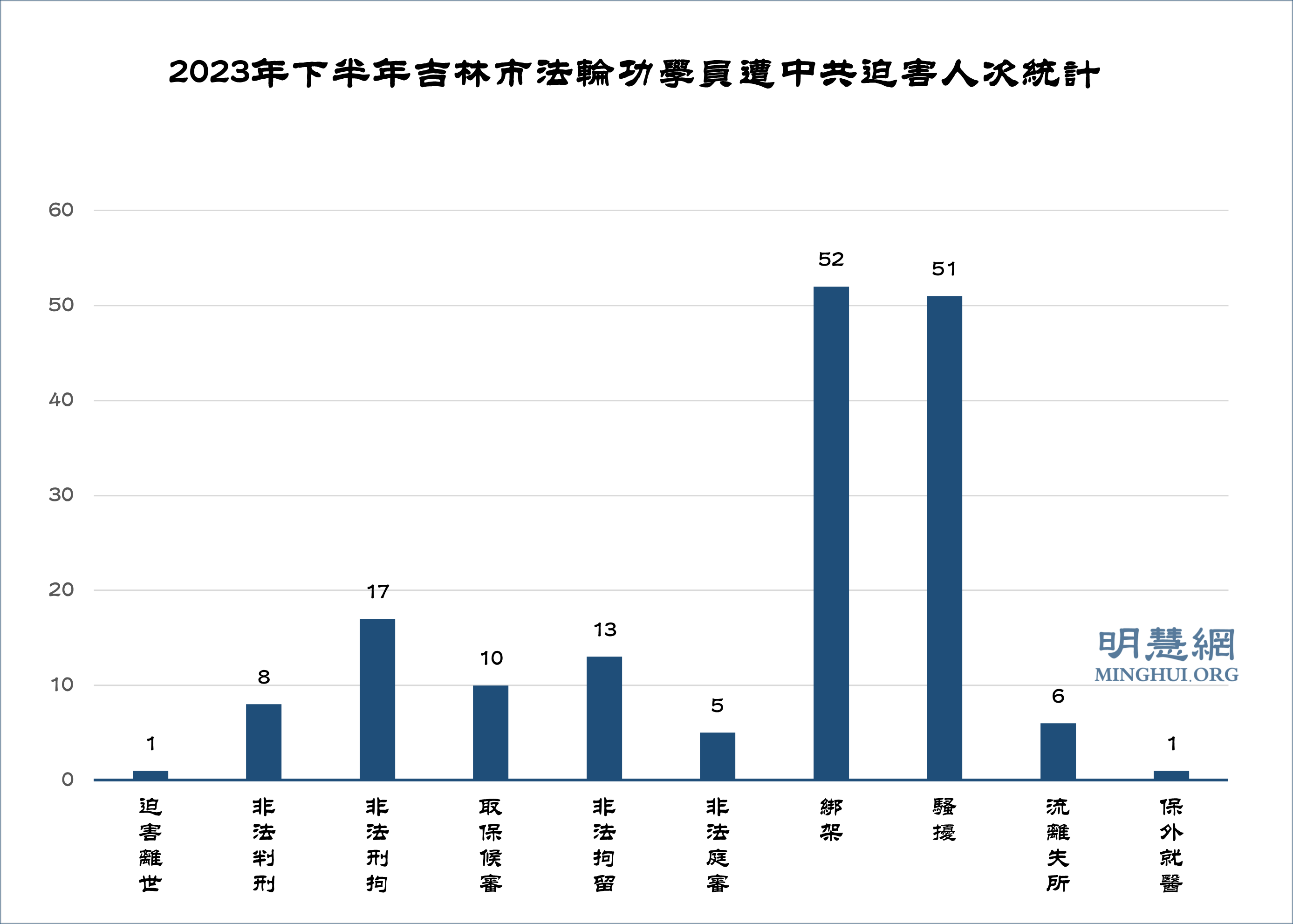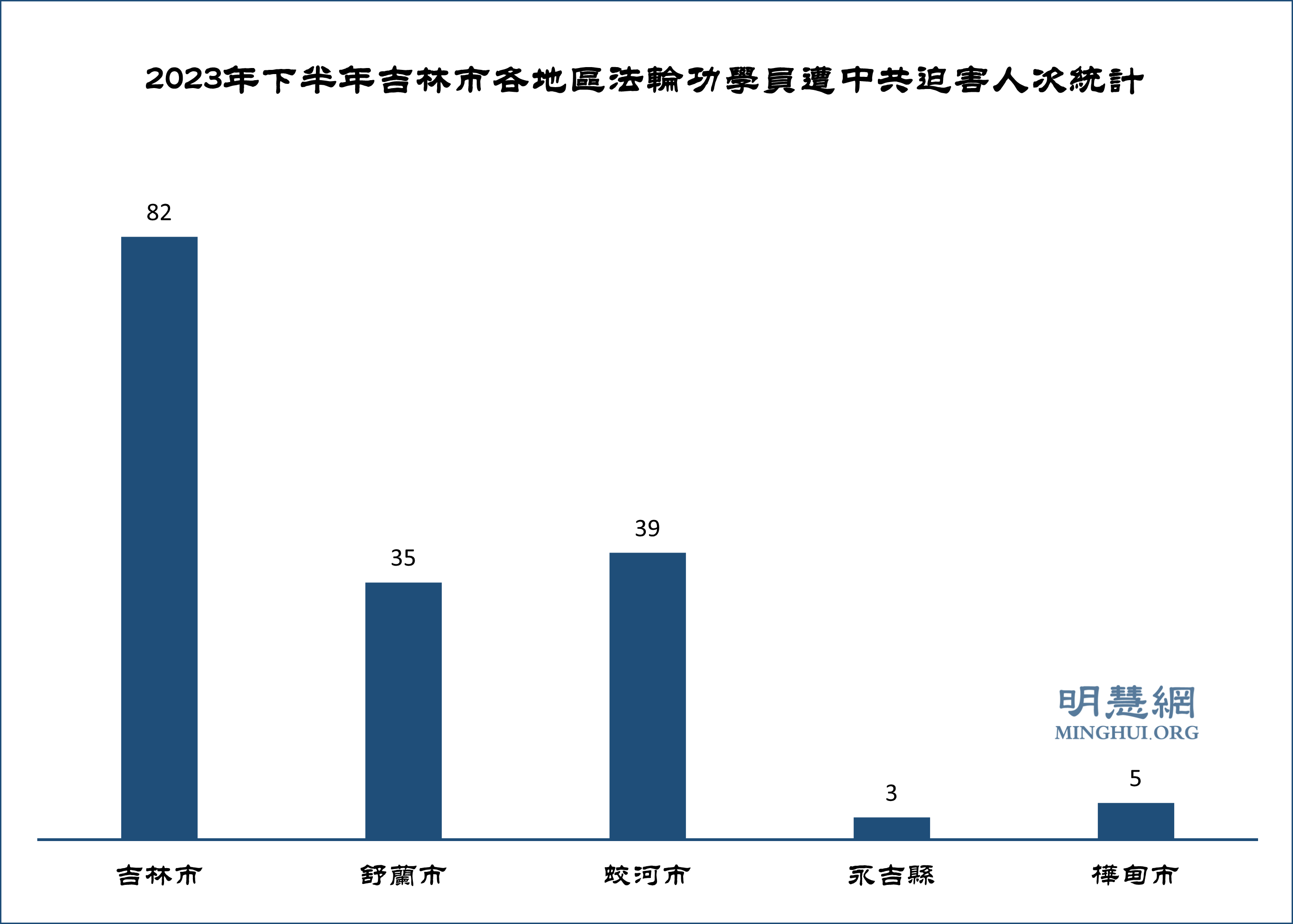 ![]() 图1:2023年下半年吉林市法轮功学员遭中共迫害人次统计 |