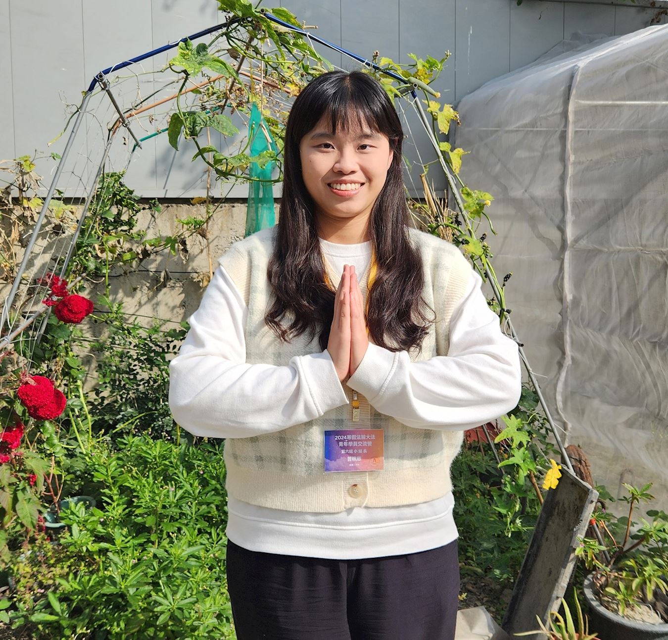 ![]() 图4:珮慈双手合十,诚心恭祝师尊新年快乐。 |