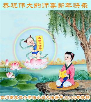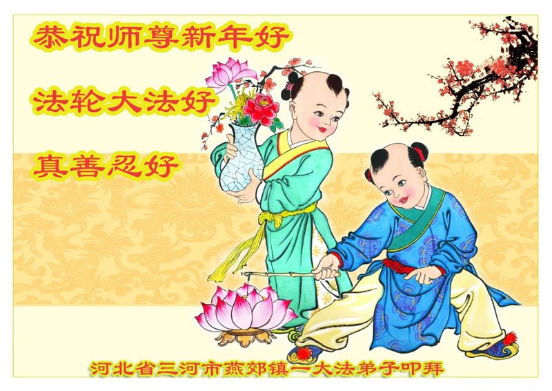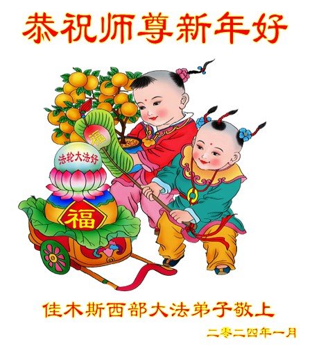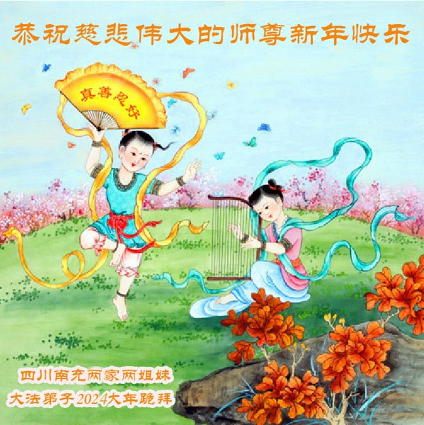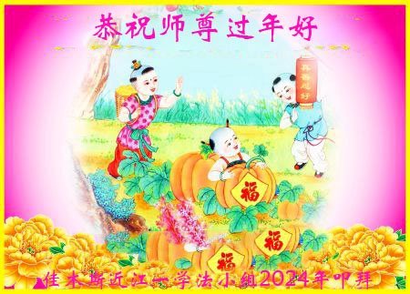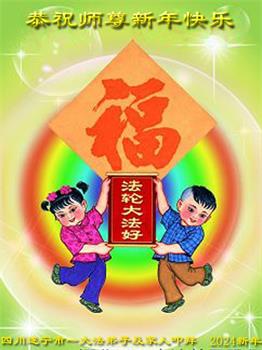 孙辈恭祝师父新年快乐!他们常到佛堂敬拜师父,诚心敬念法轮大法好!真善忍好!师父好!