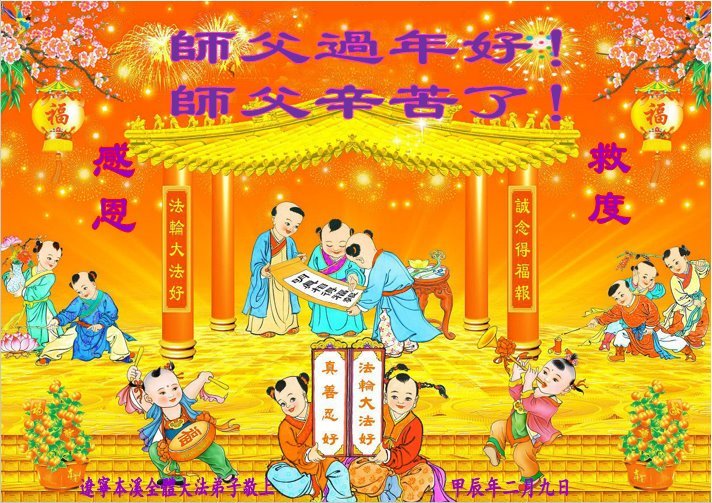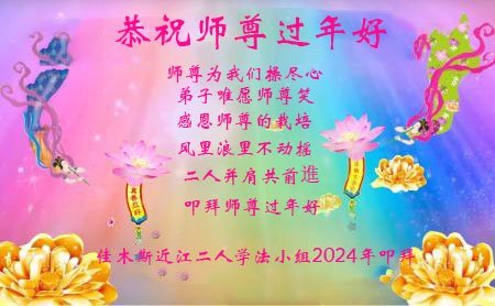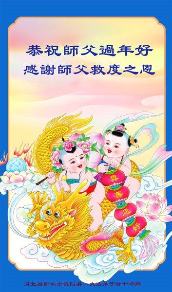 我从心里感谢李大师,也从心里感谢一直对我很关心的法轮功学员。恭祝李大师新年快乐!给李大师拜年!