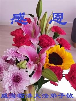 弟子感恩师父十多年保护和关怀,无病一身轻,六年前母亲病危,我们全家诚念“法轮大法好,真善忍好”在您一师父的慈悲保护下,母亲转危为安,现在九十七的母亲经常念九字真言,很开心,我们全家叩谢师恩。