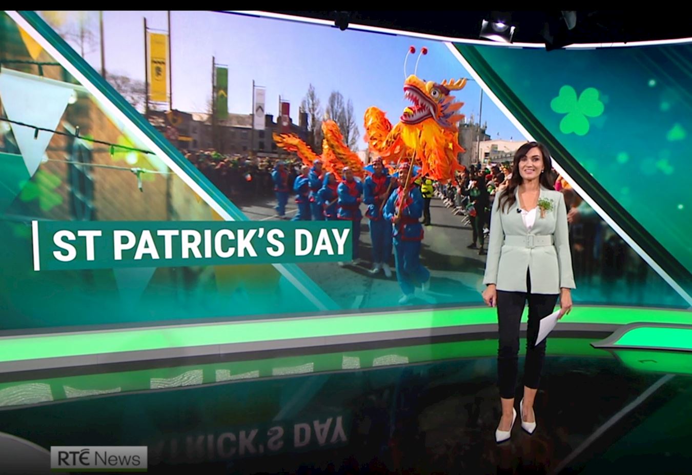今年首次亮相的舞龙队获得了观众与媒体的喜爱。上下腾飞的金龙配上传统的锣鼓,令现场观众惊艳不已。不仅侨胞挥手鼓掌,当地观众叫好不断。爱尔兰国家电视台RTE更将金龙表演作为国庆节游行视频报导的封面图片。