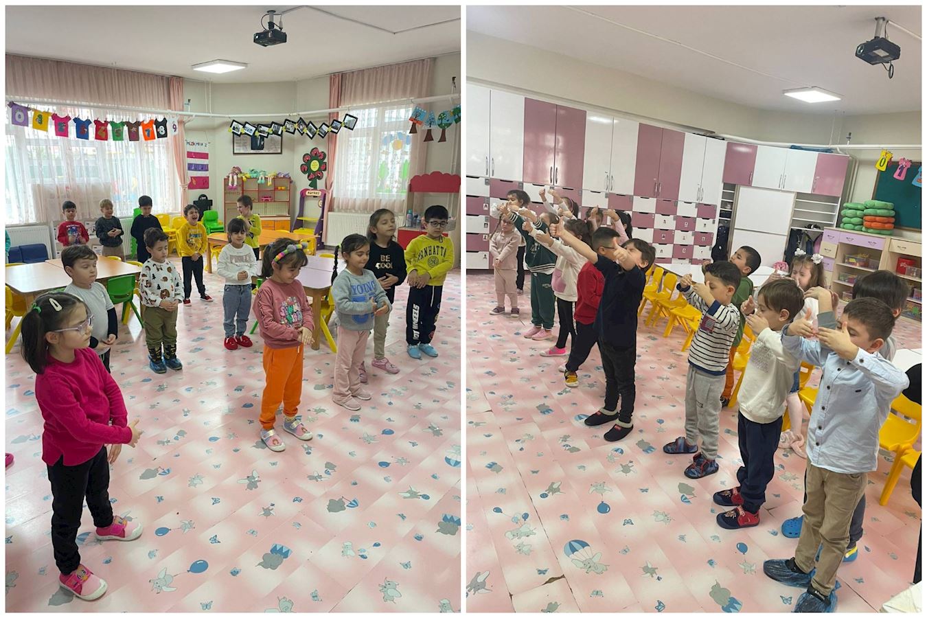 图1:二零二四年二月五日,法轮功学员受邀到内内·哈顿(Nene Hatun)幼儿园,教老师和孩子们学炼法轮功功法。