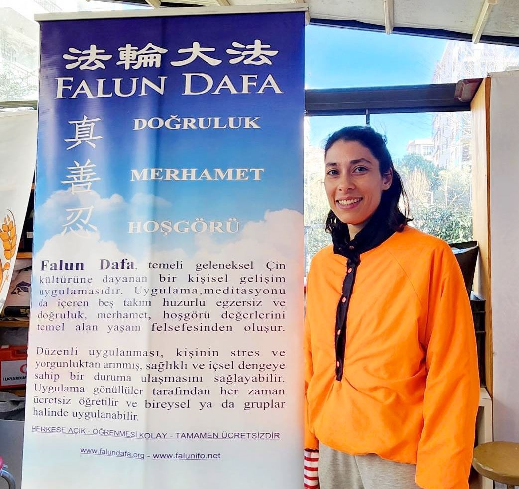 生物学专业毕业生、主任助理伊尔克·图赫塔(Ilke Tuhta)女士在介绍会后与学员们分享了她的感受:“我在读书时,找到了法轮大法。我做了一些研究,并想亲自体验这套功法。在炼功的过程中,我感觉我的神经系统和肌肉都解压了。这感觉很好,很放松。非常感谢你们。”