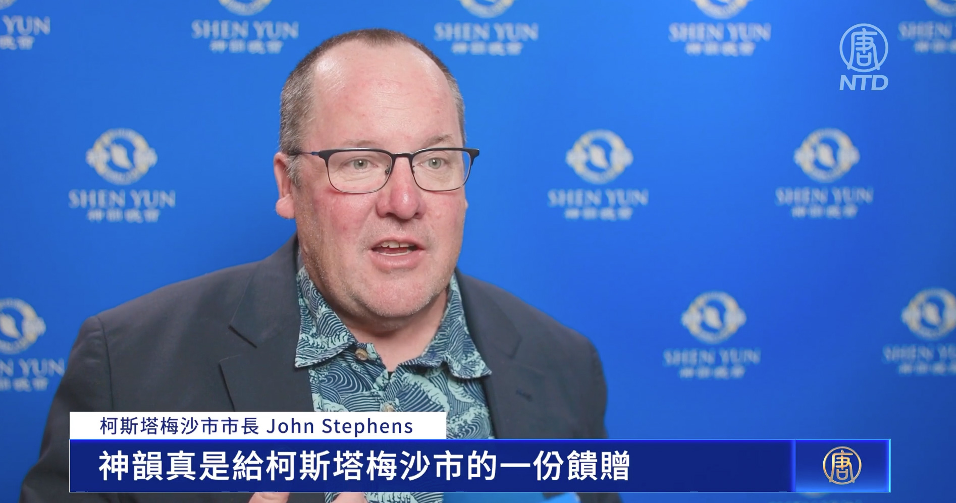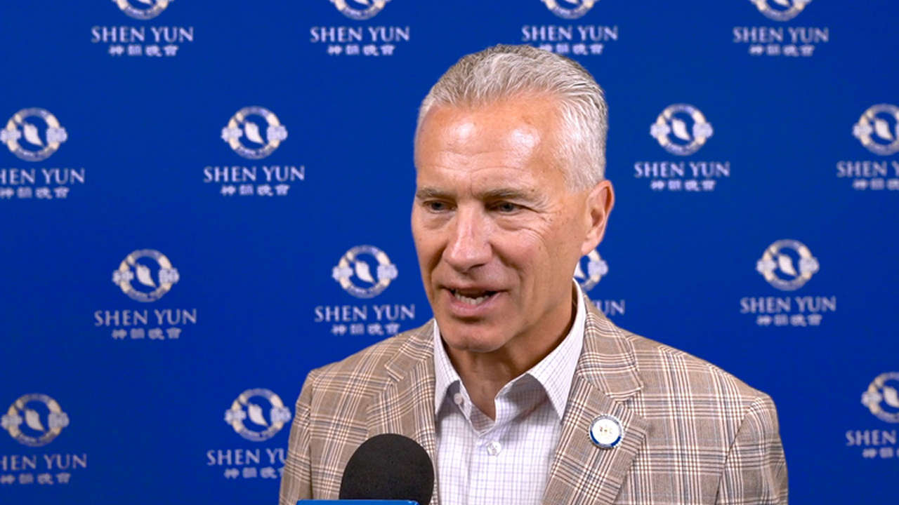 图7:二零二四年三月十六日,神韵北美艺术团在加州橙县表演艺术中心演出。美国加州柯斯塔梅沙市市长约翰。斯蒂芬斯(John Stephens)观看神韵后表达了对演出的喜爱与敬佩。(新唐人电视截图)