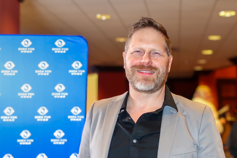 图12:二零二四年三月十五日晚,多媒体制作人、艾美奖电视节目制作人道格拉斯·约翰·维尔西拉(Douglas John Virsila)观看了神韵环球艺术团在大芝加哥郊区罗斯蒙特剧院(Rosemont Theatre)的第二场演出。(大纪元)