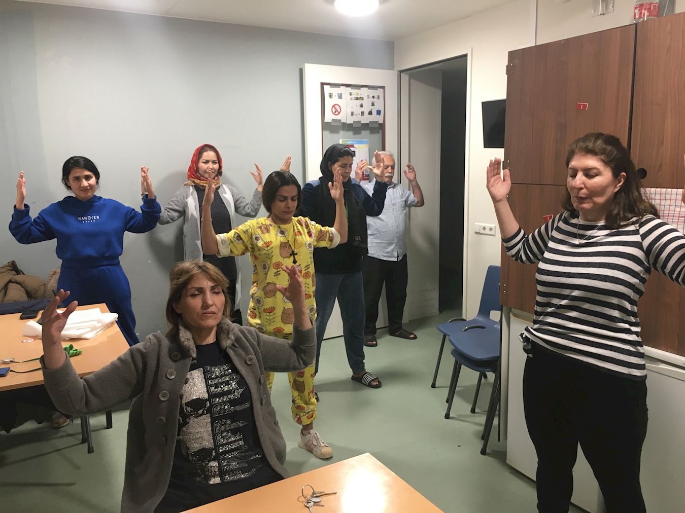 卡蒂娅(Khadeja)是来自阿富汗的难民,炼功过程中她持续几天的剧烈咳嗽几乎消失了,她觉得很惊喜。