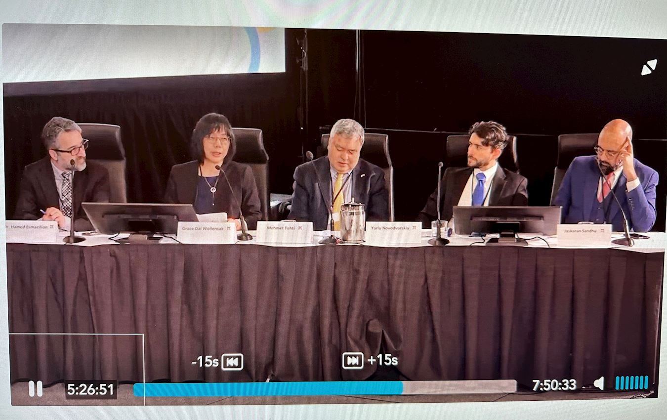![]() 图1:二零二四年三月二十七日,在加拿大首都渥太华举办的外国干涉联邦选举程序和民主制度公开调查会上,加拿大法轮大法学会负责人戴工羽(左二)和维族人权利倡导项目(URAP)主任托赫提(Mehmet Tohti)(中)对中共在加国的干扰行为作证。(视频截图) |
