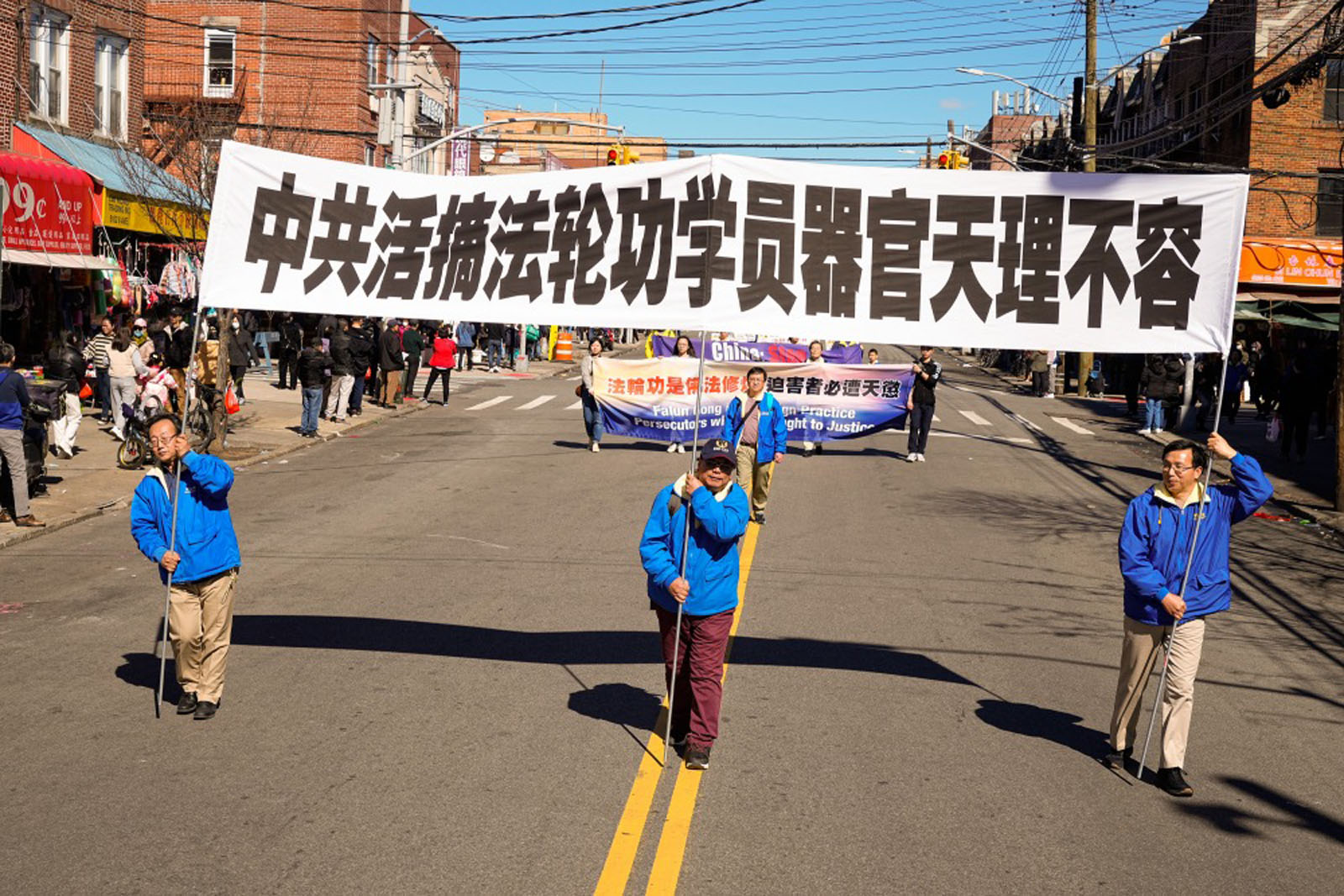 【明慧网二零二四年三月六日】(明慧记者邹德熙综合报道)二零二四年三月三日,纽约第三大华人社区——布鲁克林八大道上,近千名法轮功学员举行盛大游行。庆祝四亿两千万中国人退出中共党、团、队, 同时向当地民众传递法轮大法的福音,揭露中共对法轮功学员的残酷迫害,并呼吁制止中共所有的迫害罪行。