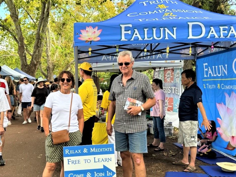 莉安娜(Leana)和保罗(Paul)来到展位上,与法轮功学员交流。在谈到法轮大法真、善、忍原则时,莉安娜表示当今世界更需要真、善、忍,她说:“我们生活在一个分裂的世界,每个领域都在分裂,这是错误的。”“在过去的三年里,我们没有太多的真,我们确实需要善,我们也确实需要忍。”
