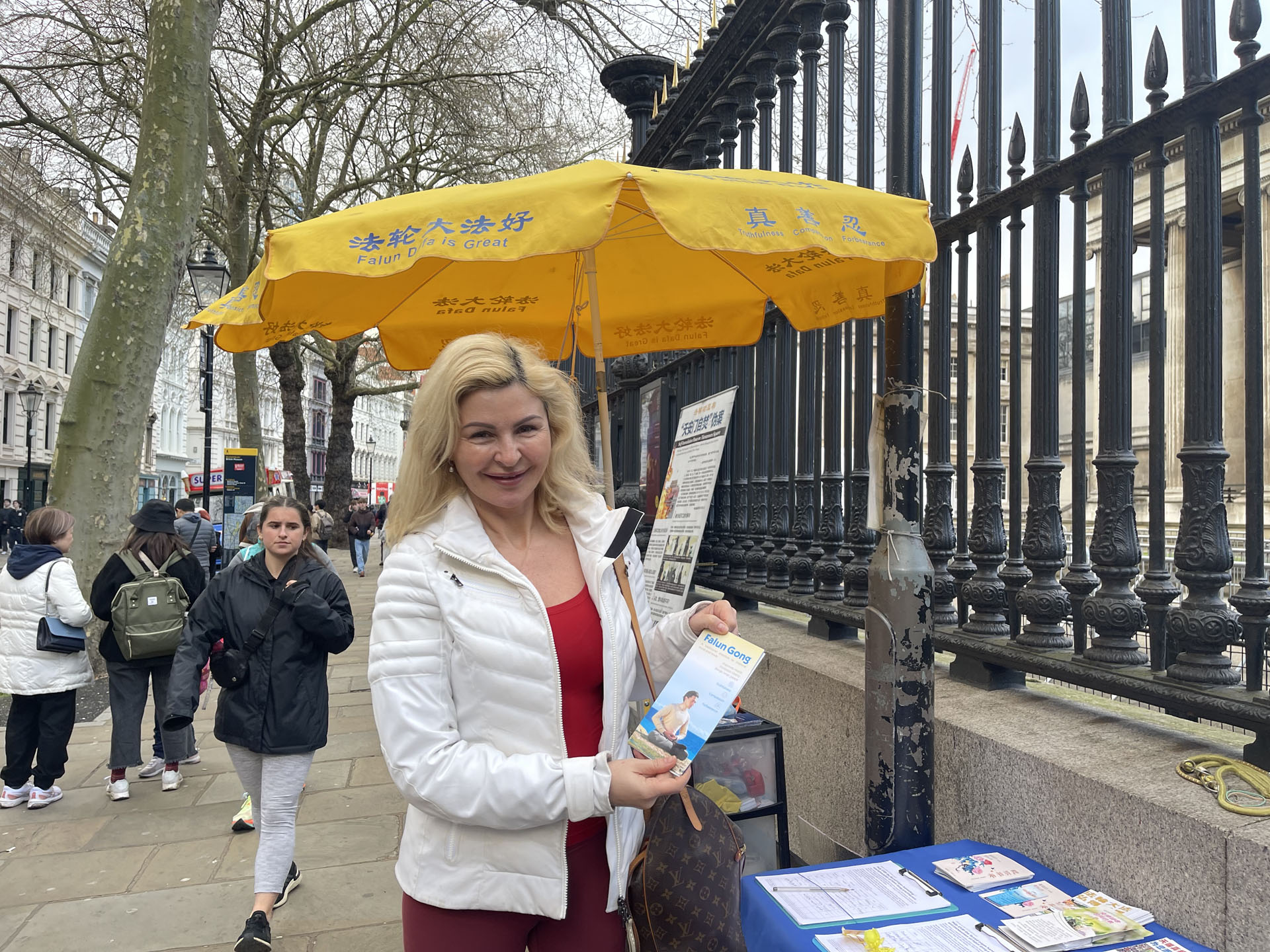俄国人爱玛从事房地产行业,经常在美国与英国之间飞。当她看到真善忍三个字,她说:“无与伦比,我要努力学着做。因为整天忙忙碌碌,没有静下来想一想。这个理念太好了,我要努力按这个准则实践。”