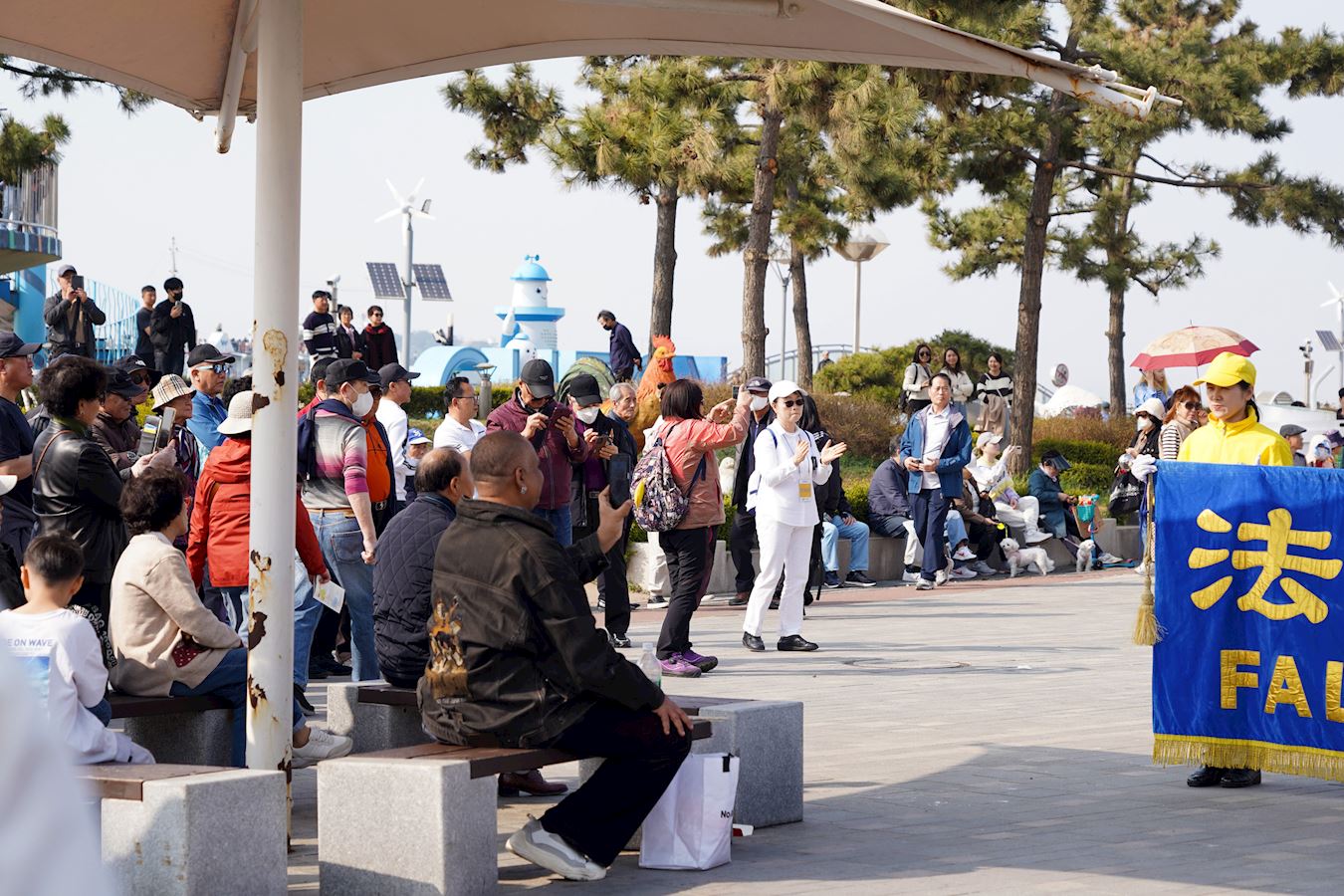二零二四年以来,来韩国旅游的中国游客逐渐增加,仁川成为国内外瞩目的观光城市。本次法轮功学员的弘法活动,也吸引了很多中国大陆的游客驻足观赏。除了让人们欣赏音乐之外,法轮功学员还介绍了法轮大法、法轮功的功法表演,传递了身心健康的方法。