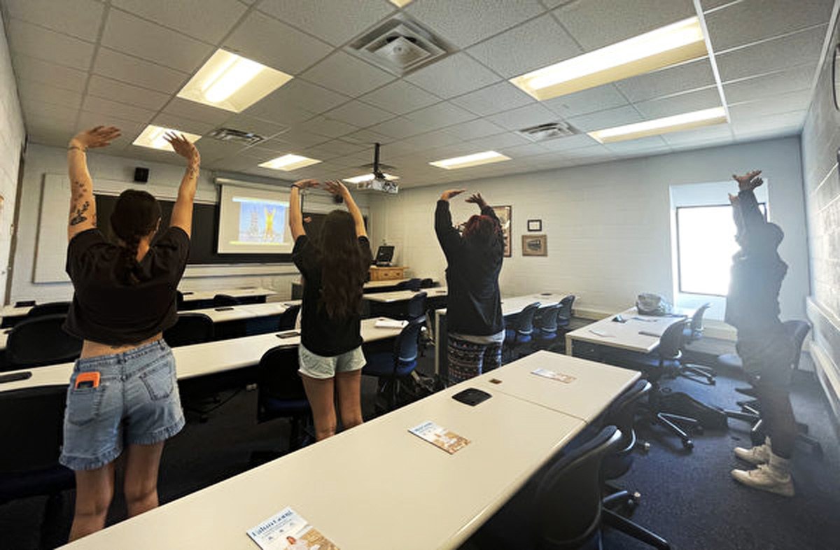 当天,法轮功学员还当场教学生们学炼法轮功功法。大学生们被法轮功缓、慢、圆的动作和纯正能量所吸引,学功之后他们表示感受很祥和与放松。