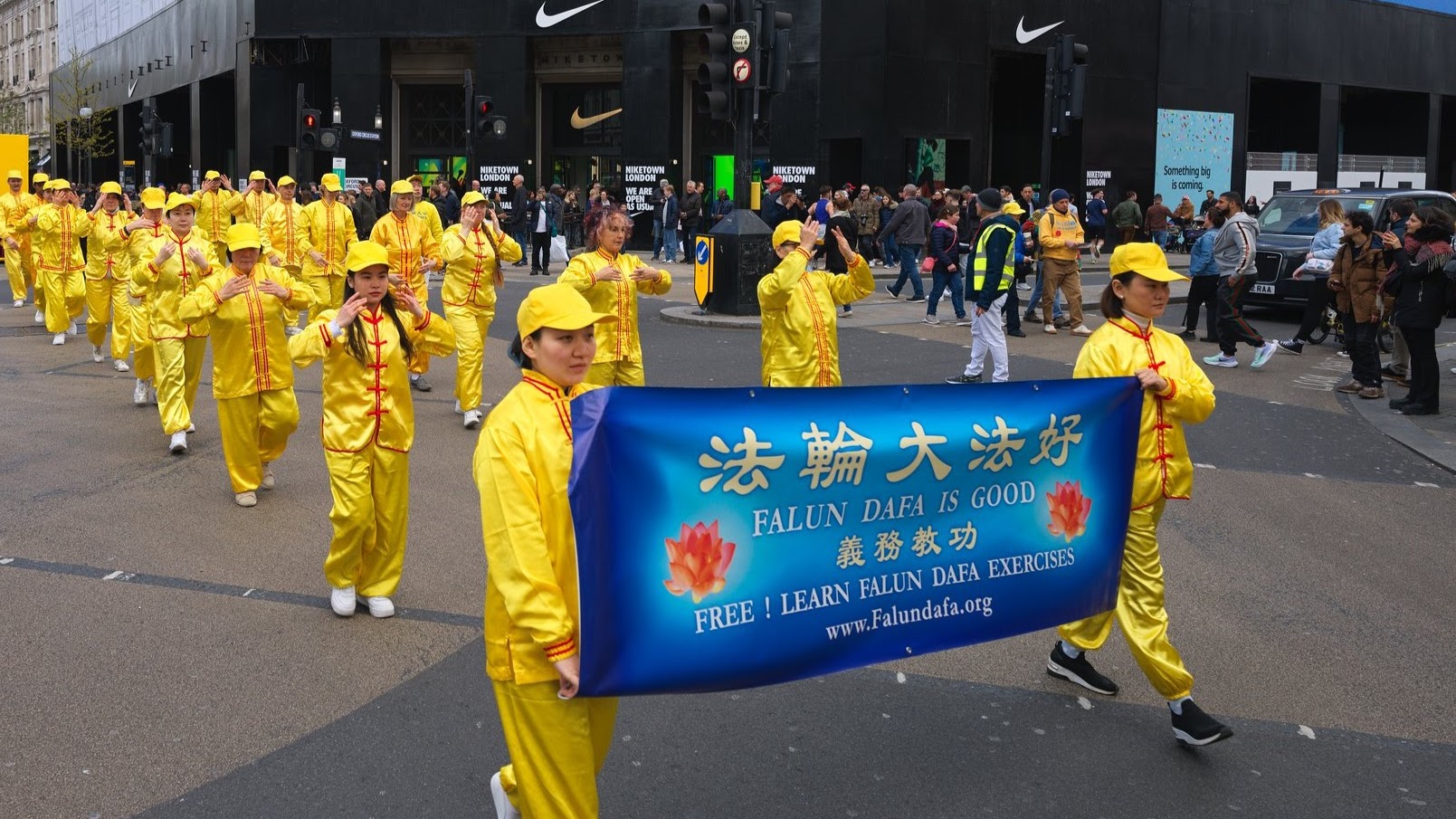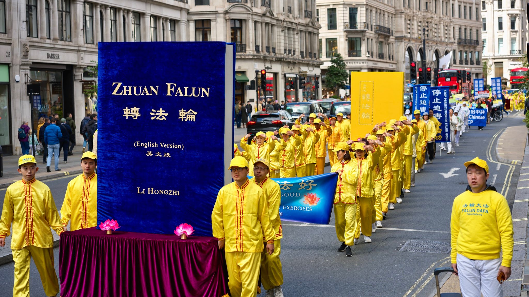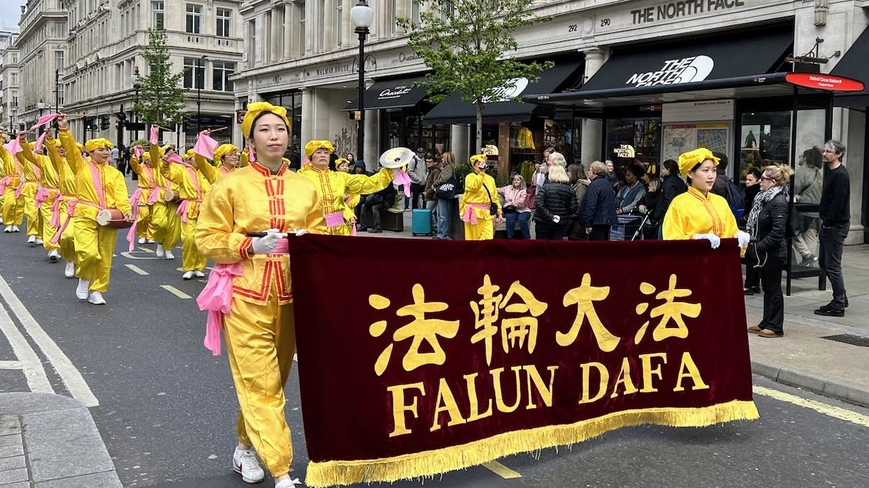 ![]() 图1~5:法轮功学员游行队伍经过伦敦市中心 |