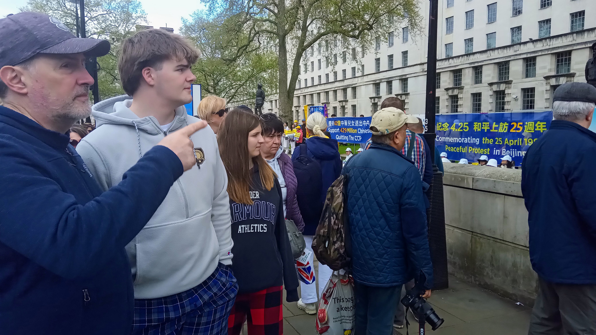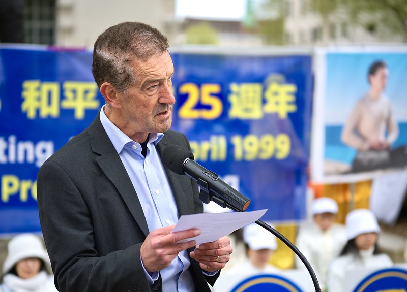 英国港侨协会创办人、人权活动家郑文杰曾在英国驻香港总领事馆任职。他说:“二十五年前,在一个繁华都市的熙攘街头,一群人踏上了改变历史进程的旅程。以坚定的勇气和对信仰的坚定承诺,他们进行了和平抗议,他们所要求的仅仅是无恐惧地实践信仰的权利,而不受迫害或报复。他们的行动并非源于对抗,而是来自于对自己、对同道和对后代的责任感。