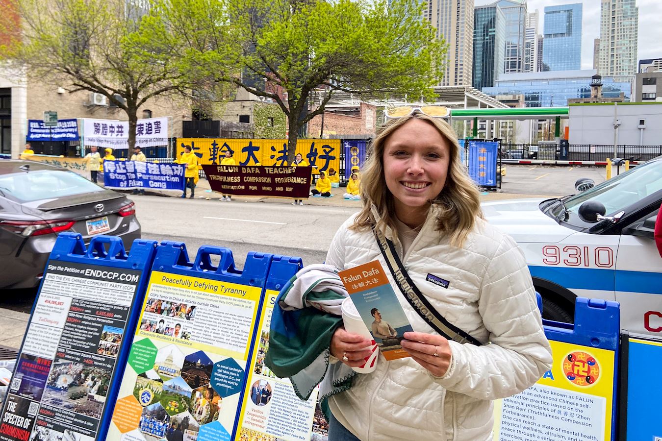 来自南卡罗来纳州的佐伊(Zoe)是 Loyola大学法学院一年级研究生。在回家的路上,她看到了法轮功学员的和平抗议,表示她非常支持法轮功学员反迫害的所有努力。