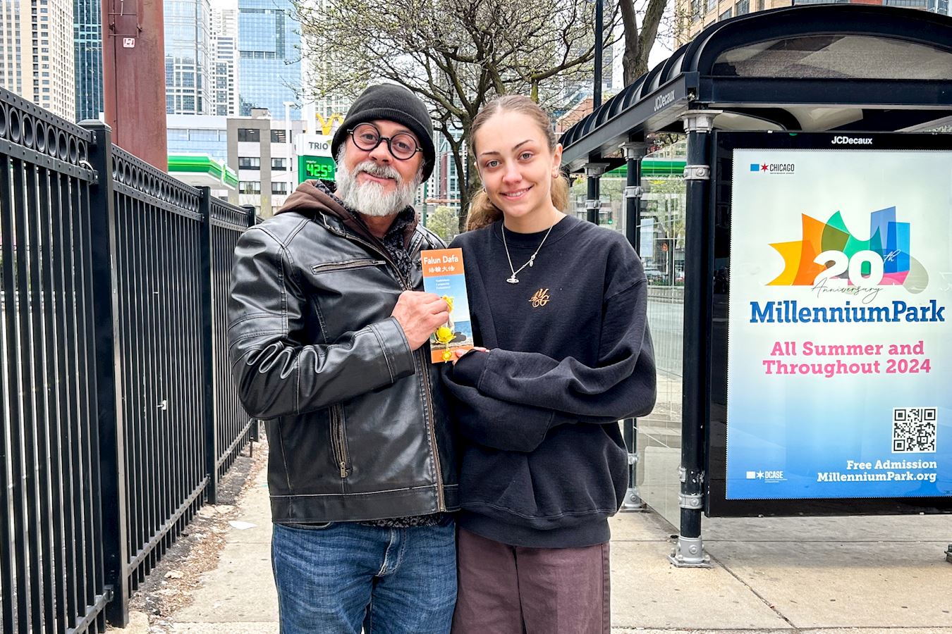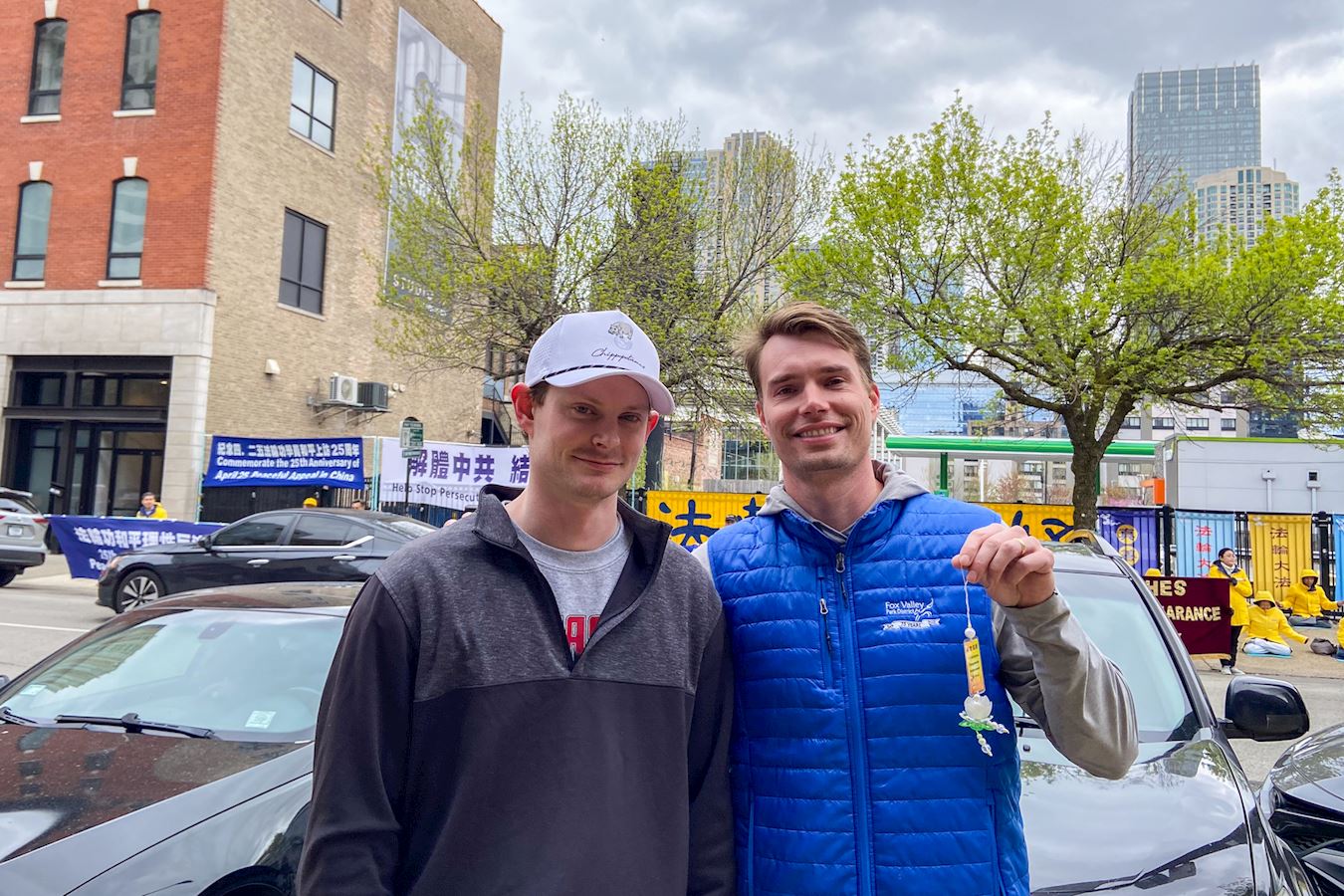 保罗·史密斯(Paul Smith)和帕克·约翰逊(Parker Johnson)是分别来自亚利桑那州和威斯康星州的游客,他们来芝加哥参加朋友的婚礼。他们表示中共对法轮功的迫害体现了它的邪恶。史密斯说:“我们绝对支持(法轮功),我希望迫害立刻停止!”他们很高兴能够分享他们对法轮功的支持。
