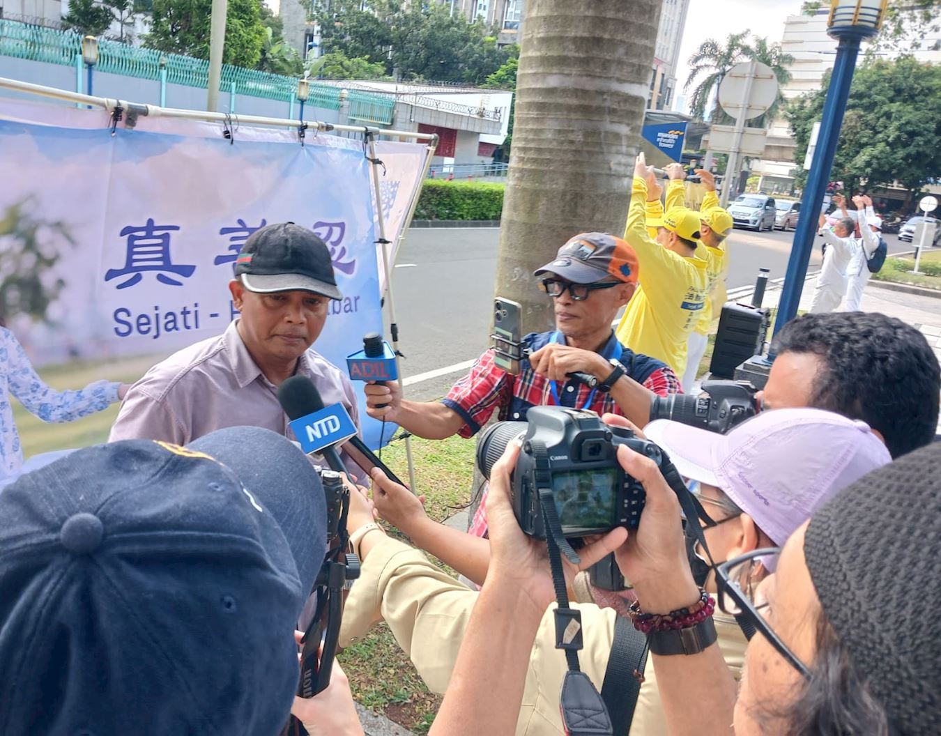图4:“ 致力全球人权 ”(Global Human Rights Efforts,简称GHURE)组织负责人法德贾尔(Fadjar)表示,该组织支持人们应在中国可以自由的修炼法轮功。