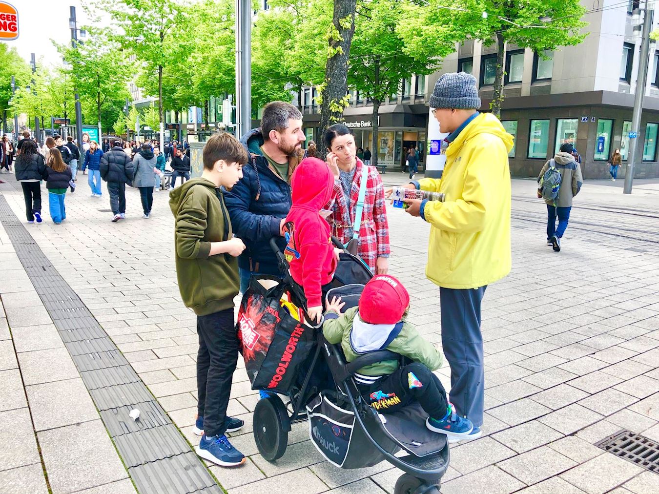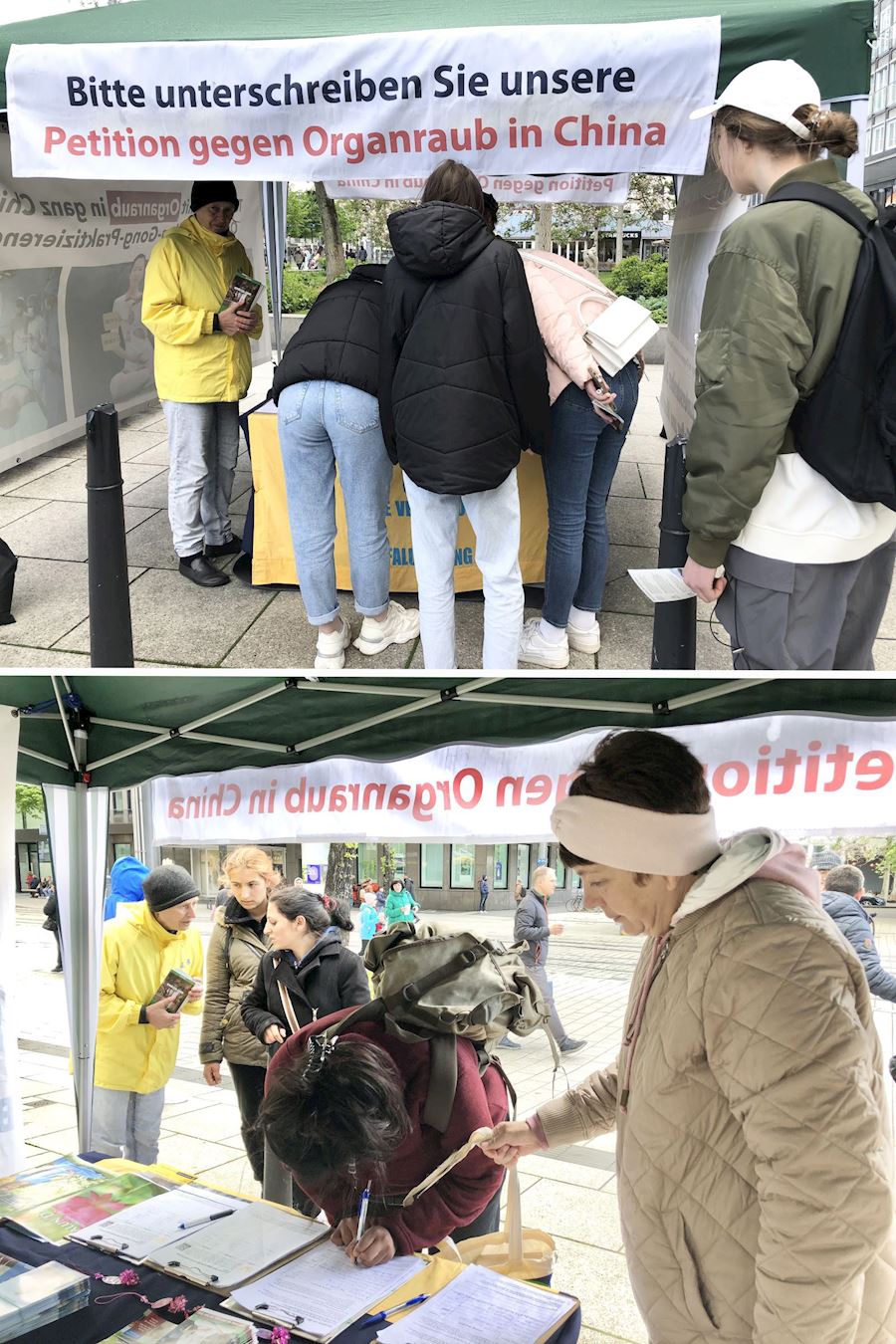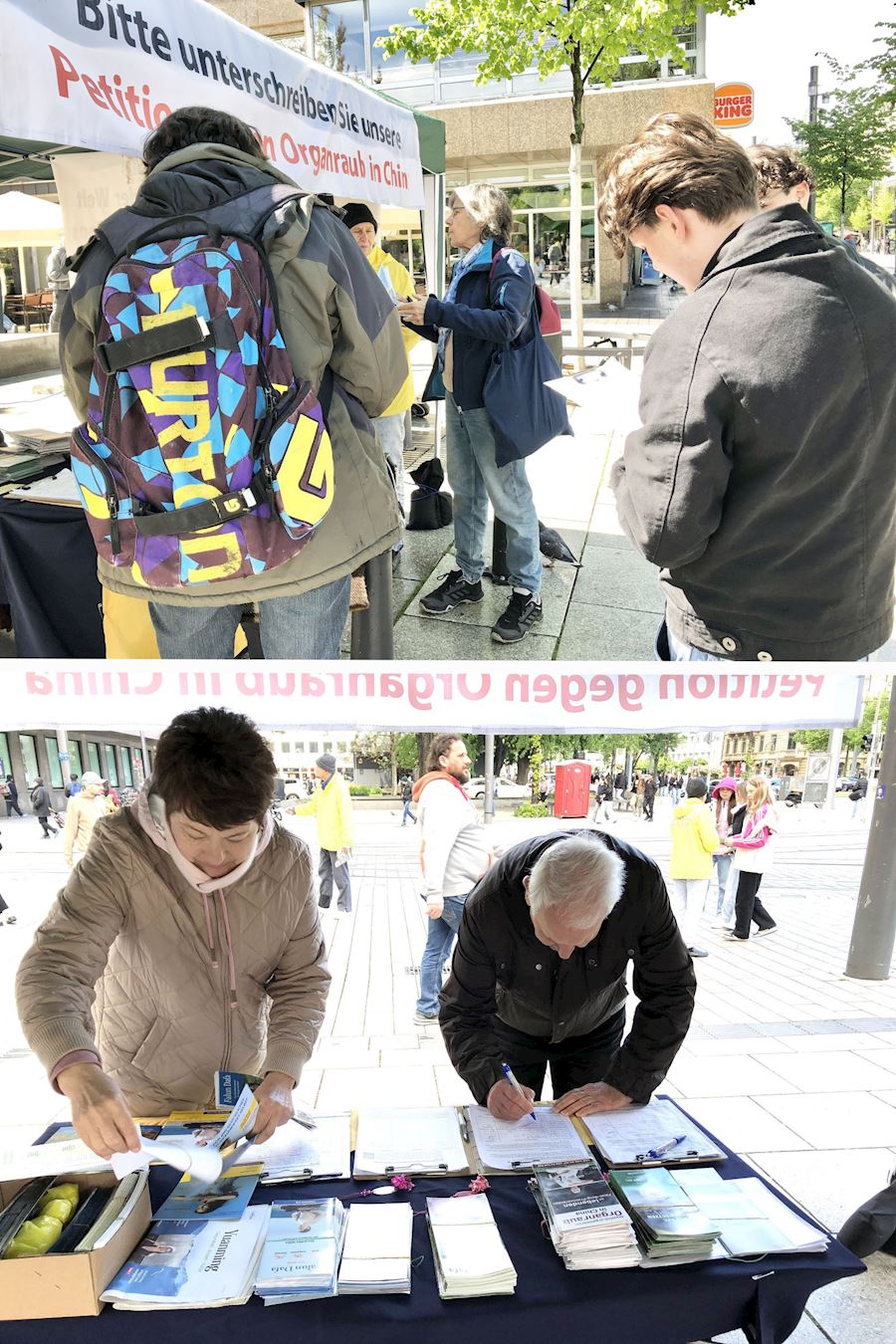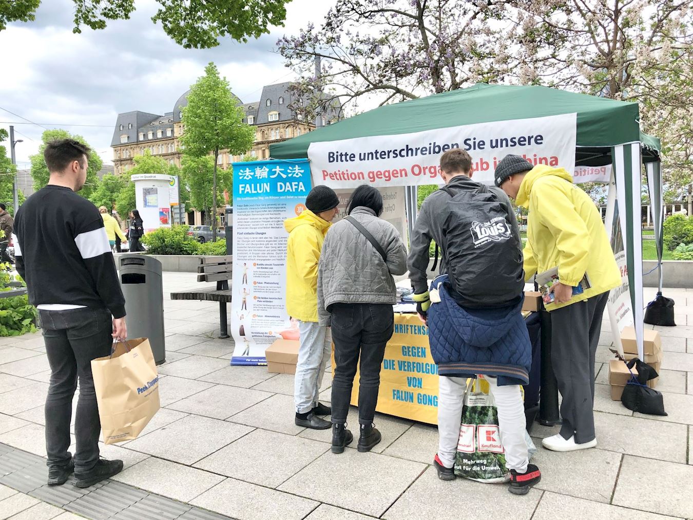 许多路人接过传单,驻足、认真聆听学员讲述中共迫害事实真相。他们震惊于中共活体摘取法轮功学员器官变卖牟利的残暴,明白真相的人们纷纷签名声援法轮功学员,并希望迫害早日停止。了解到法轮大法以真、善、忍为修炼原则,可以使人身心健康。不少居民对即将在曼海姆举办的法轮功免费教功班表示出极大兴趣。