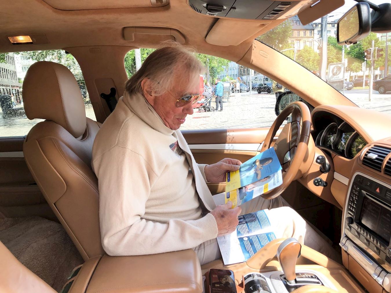 ![]() 图9:车主坐在车里认真阅读曼海姆免费教功的传单。 |