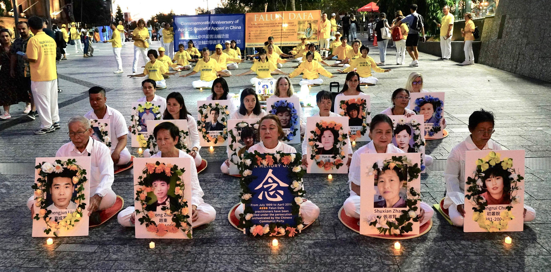 法轮功学员在点点烛光映衬下,和平静坐与炼功的场面,吸引市民和游客前来了解真相。而在了解到法轮功学员没有任何政治目的,只是想要修炼真、善、忍做好人,但却遭受中共残酷迫害、甚至被活摘器官后,人们纷纷签名,谴责中共迫害法轮功。有的人还表示:正义终将战胜邪恶!