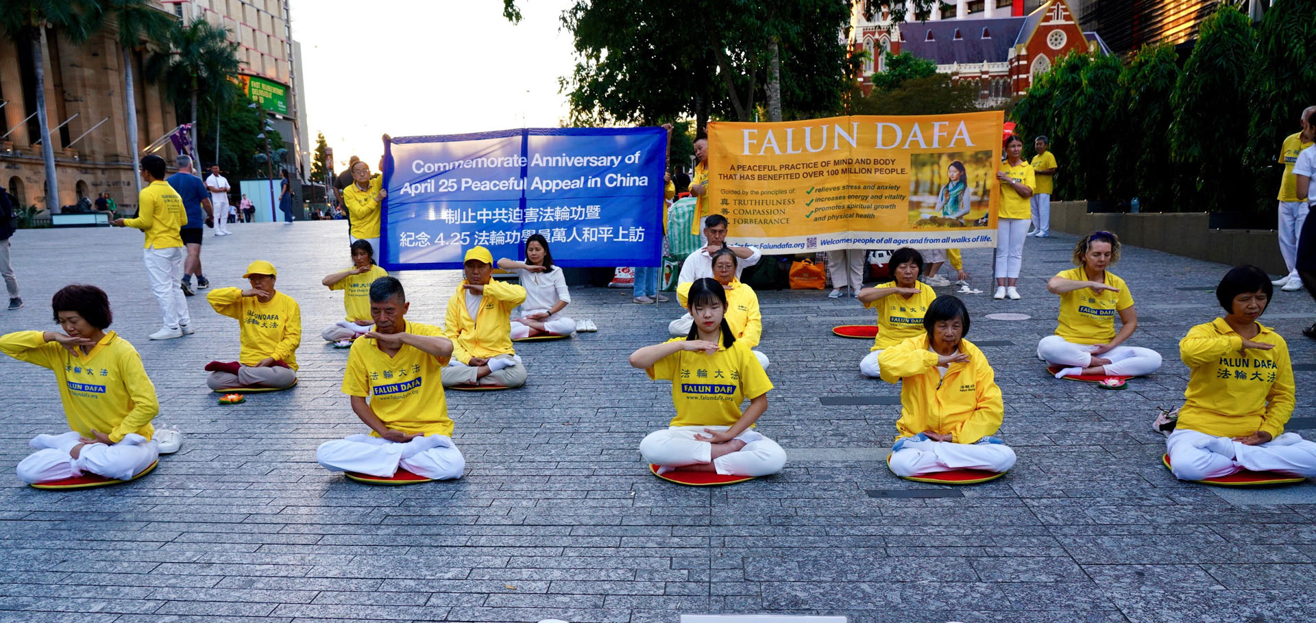 ![]() 图1~4:昆士兰各族裔的法轮功学员在布里斯班市中心乔治王广场(King George Square),举行了集体炼功与烛光悼念活动,纪念法轮功学员“四二五”和平上访。 |