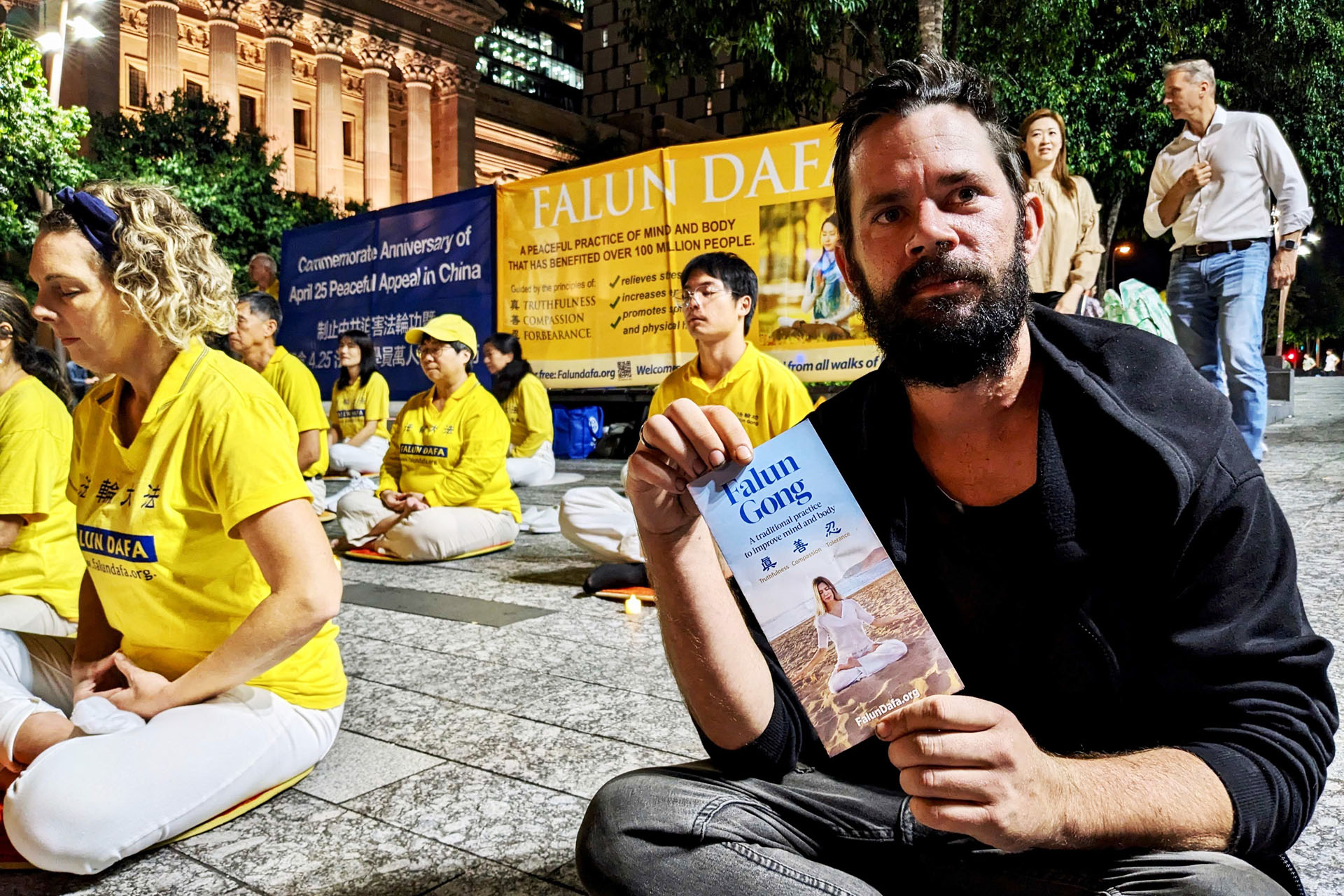 当晚澳洲人安东尼·爱德华·赫米斯顿(Anthony Edward Hermiston)被法轮功学员祥和与宁静的烛光悼念活动深深吸引,真切地希望能了解真相。他说:“我希望我能做些什么来制止中共迫害法轮功,我真的希望我能做些什么。”