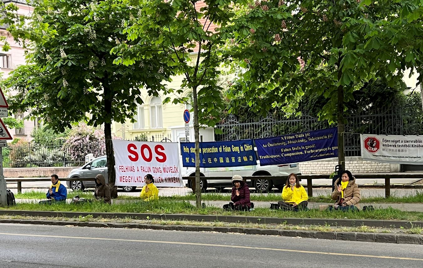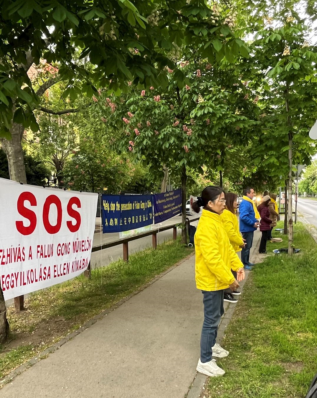 <英文版: https://en.minghui.org/html/articles/2024/4/29/216798.html>纪念四·二五 西班牙法轮功学员中使馆前和平请愿
